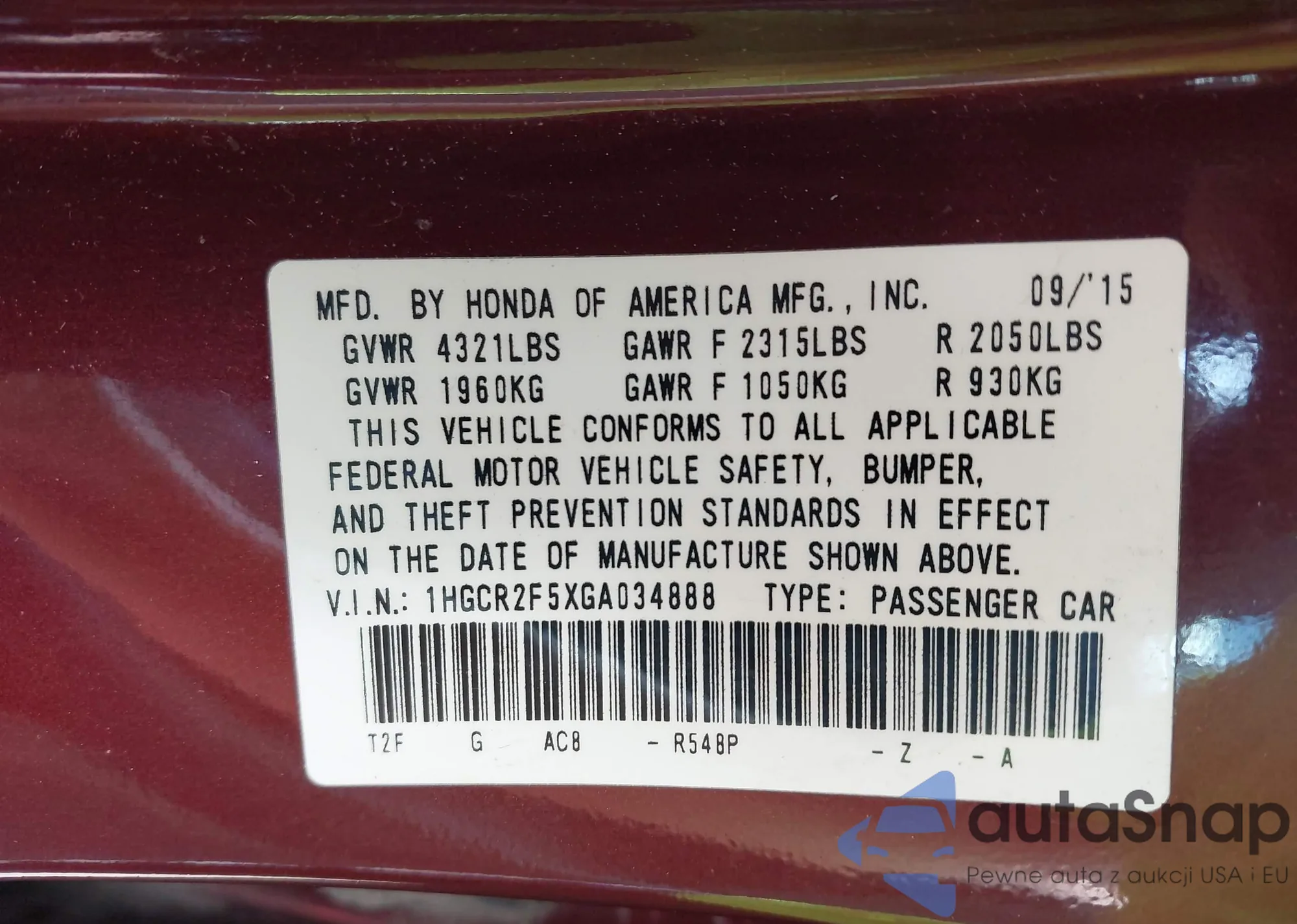 VIN: 1HGCR2F5XGA034888