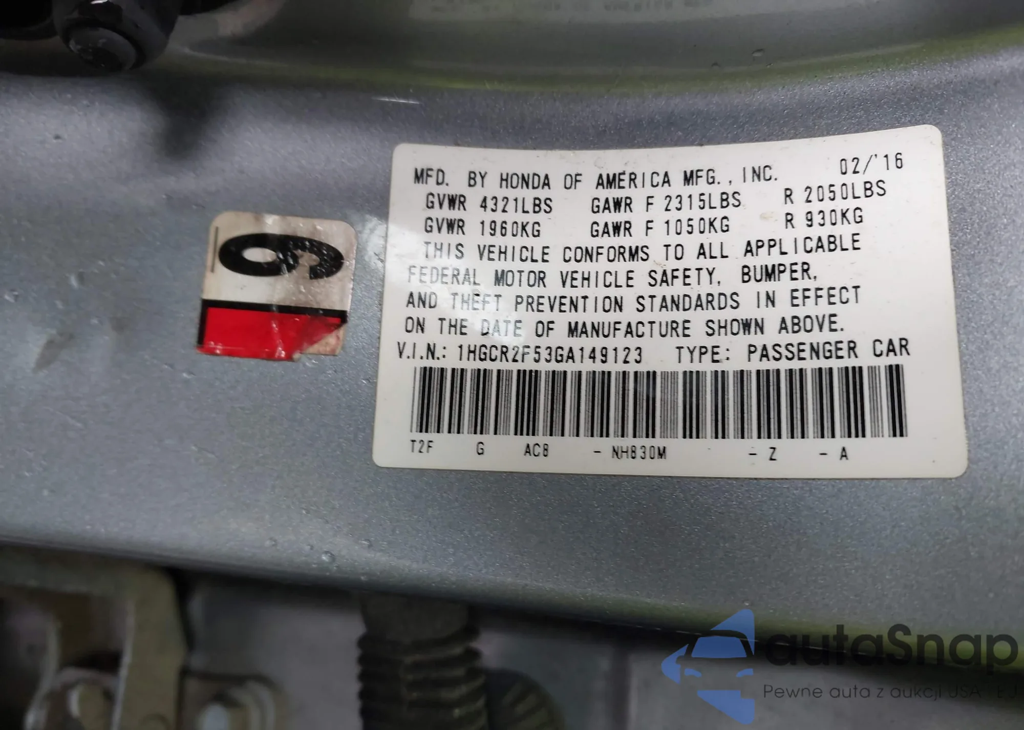 VIN: 1HGCR2F53GA149123