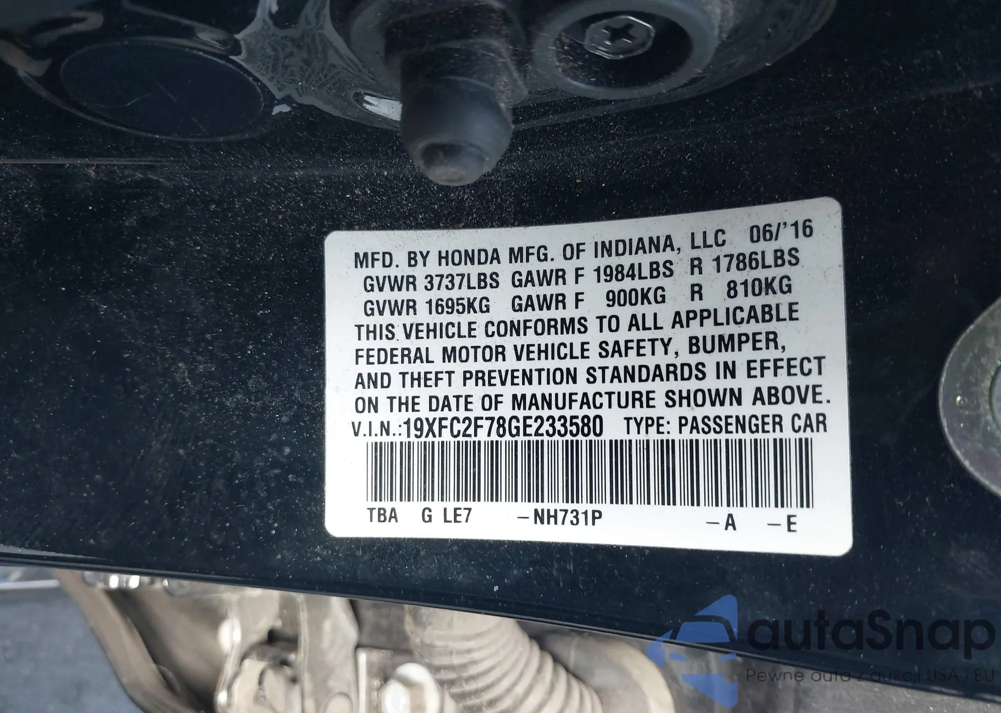• VIN: 19XFC2F78GE233580