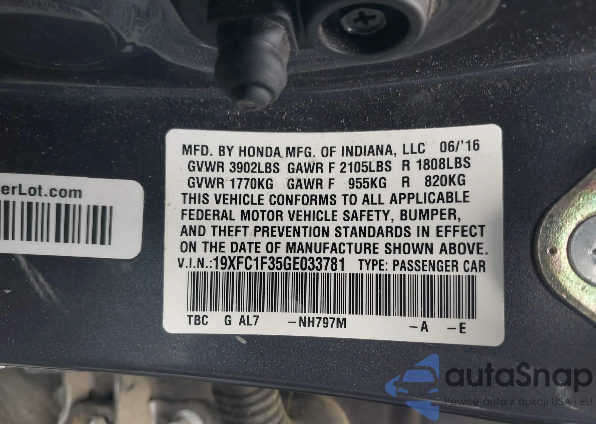 VIN: 19XFC1F35GE033781