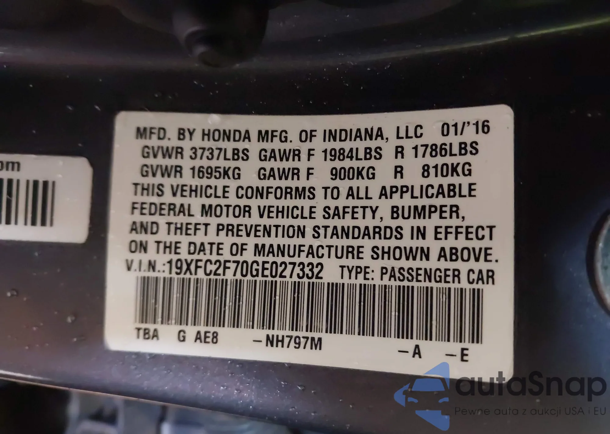 VIN: 19XFC2F70GE027332