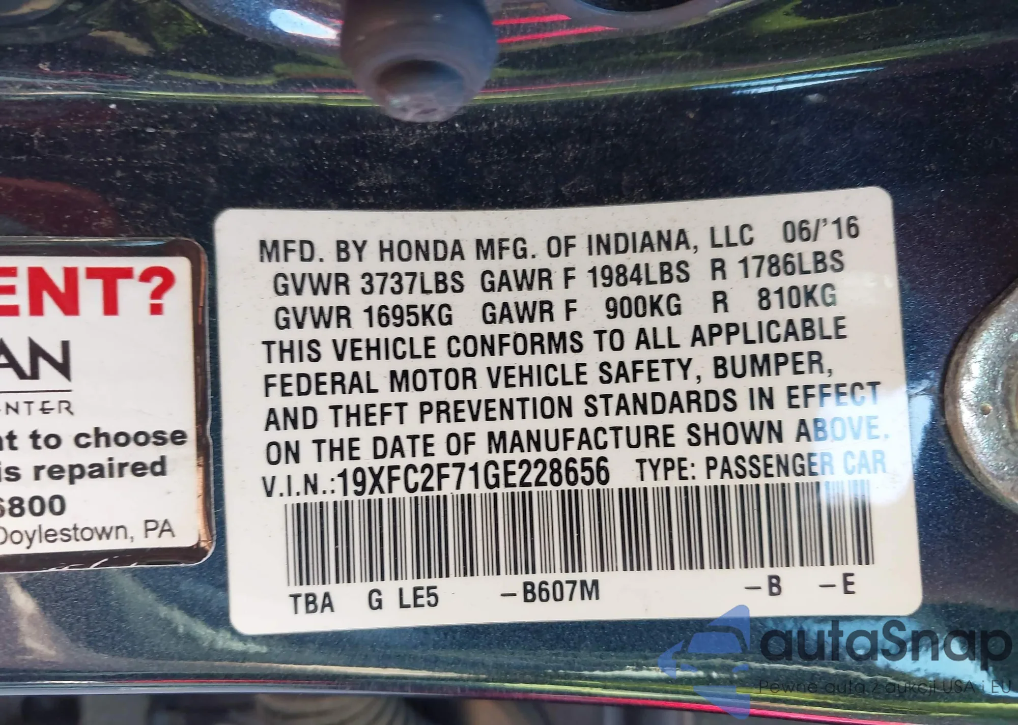 VIN: 19XFC2F71GE228656