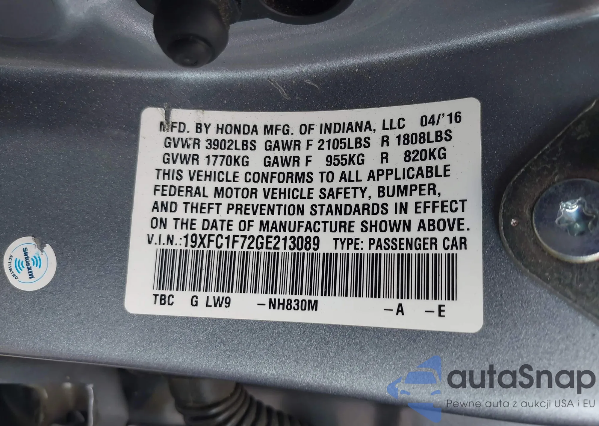 VIN: 19XFC1F72GE213089
