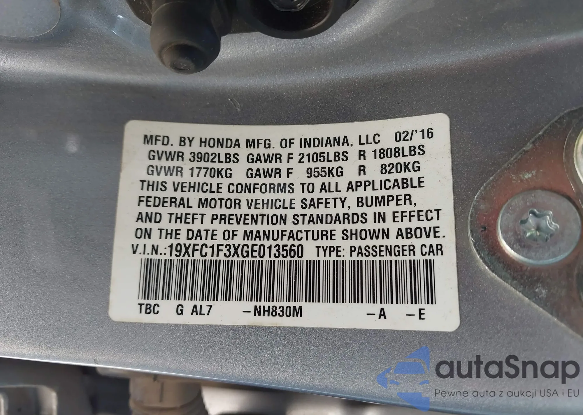 VIN: 19XFC1F3XGE013560