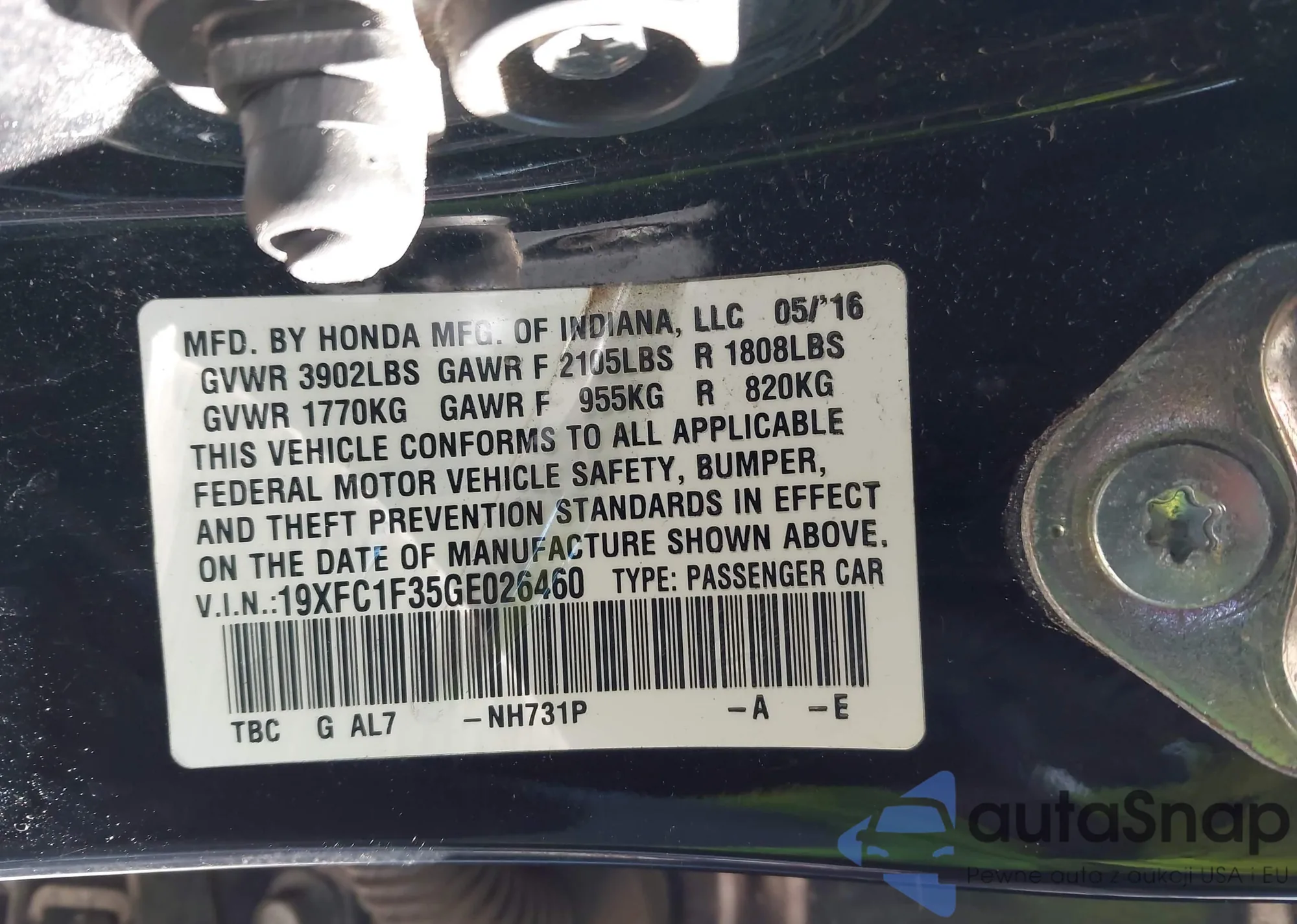 VIN: 19XFC1F35GE026460