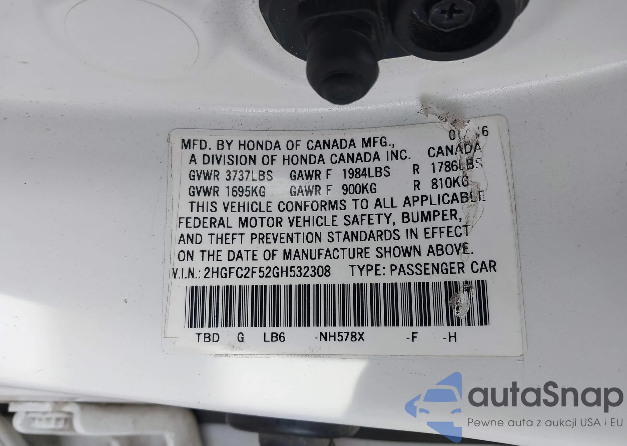 VIN: 2HGFC2F52GH532308