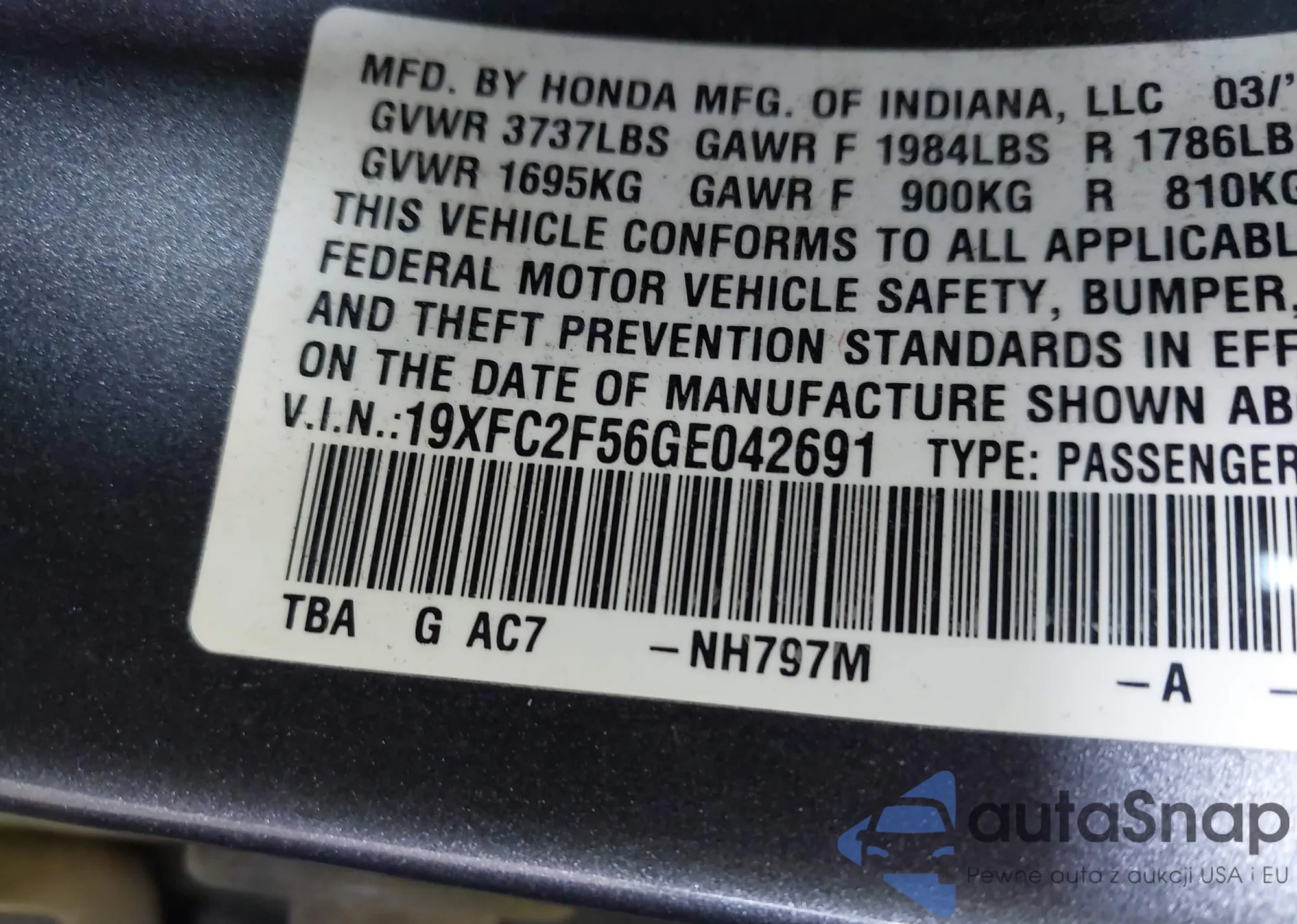 VIN: 19XFC2F56GE042691