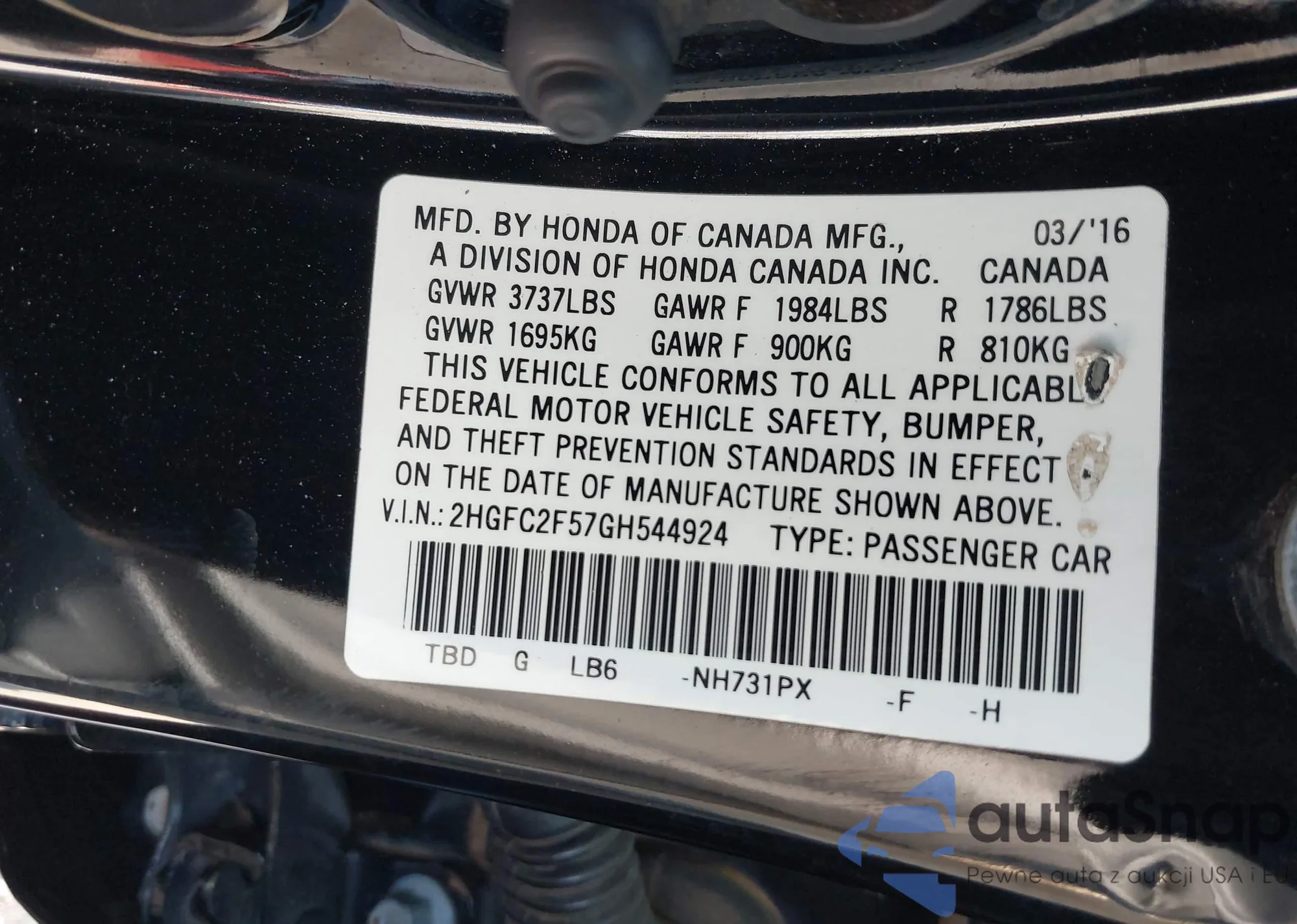 • VIN: 2HGFC2F57GH544924