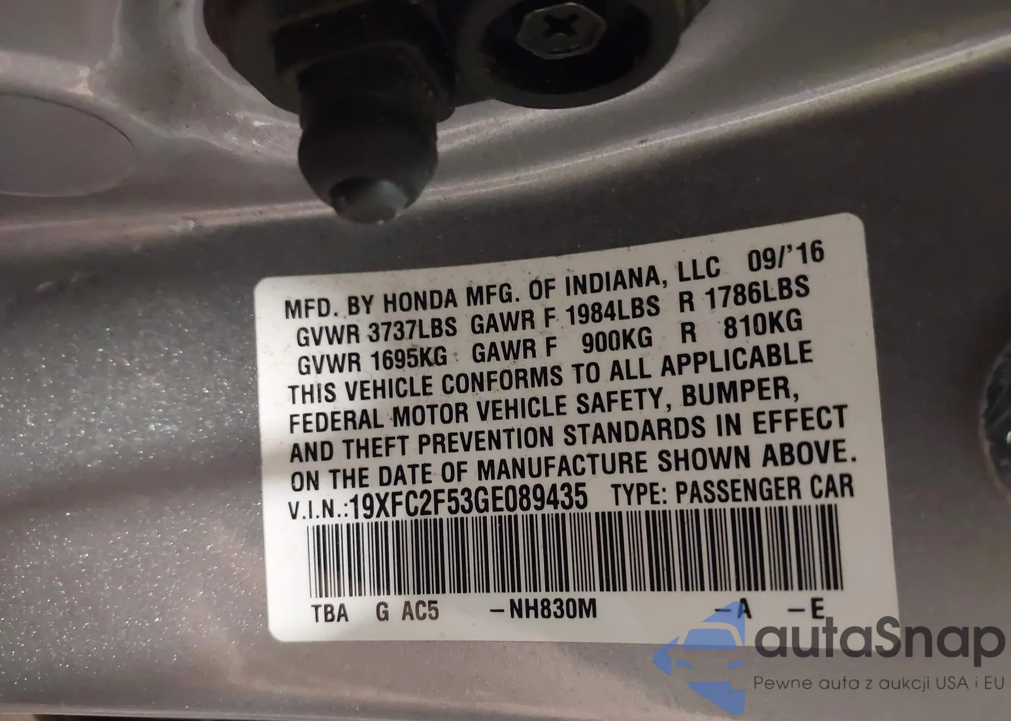 The car Honda Civic 2016 (VIN 19XFC2F53GE089435) has not been auctioned before. The documents are clean, and the mileage matches or is below the market average. Sold by an insurance company – we recommend purchase. Delivery to the port will take approx. 6–8 weeks.