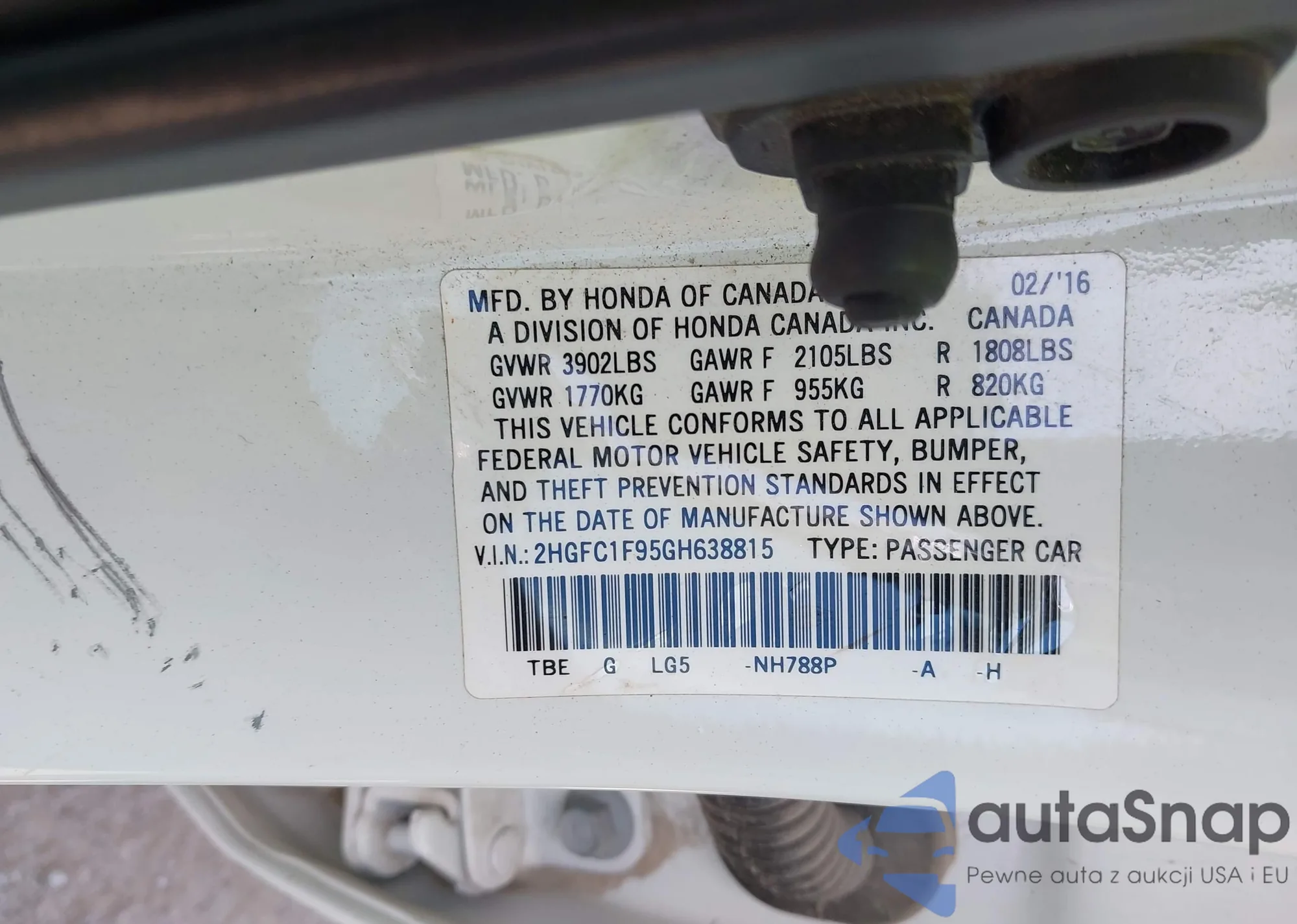 VIN: 2HGFC1F95GH638815