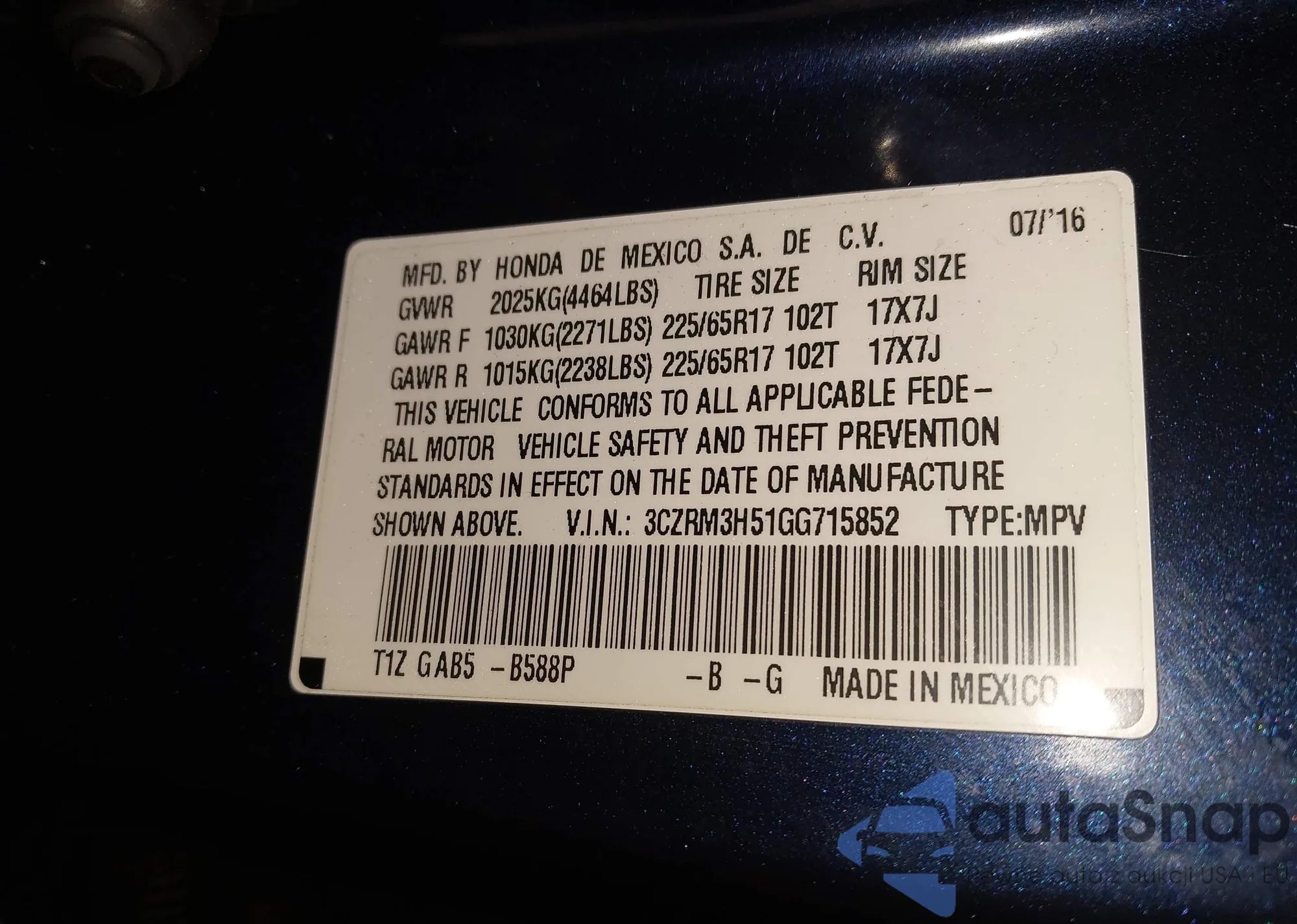 The car Honda CR-V 2016 (VIN 3CZRM3H51GG715852) has not been auctioned before. The documents are clean, and the mileage matches or is below the market average. Sold by an insurance company – we recommend purchase. Delivery to the port will take approx. 6–8 weeks.
