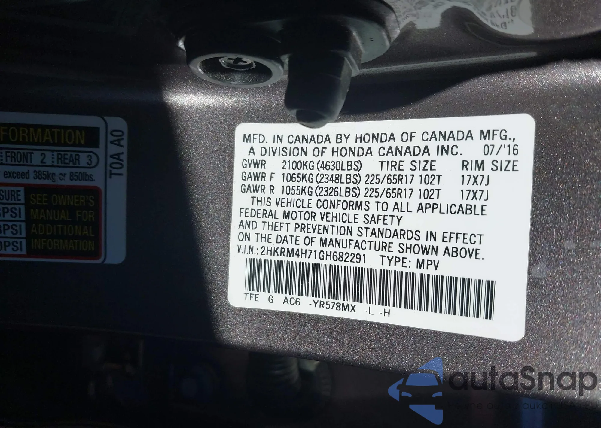 VIN: 2HKRM4H71GH682291