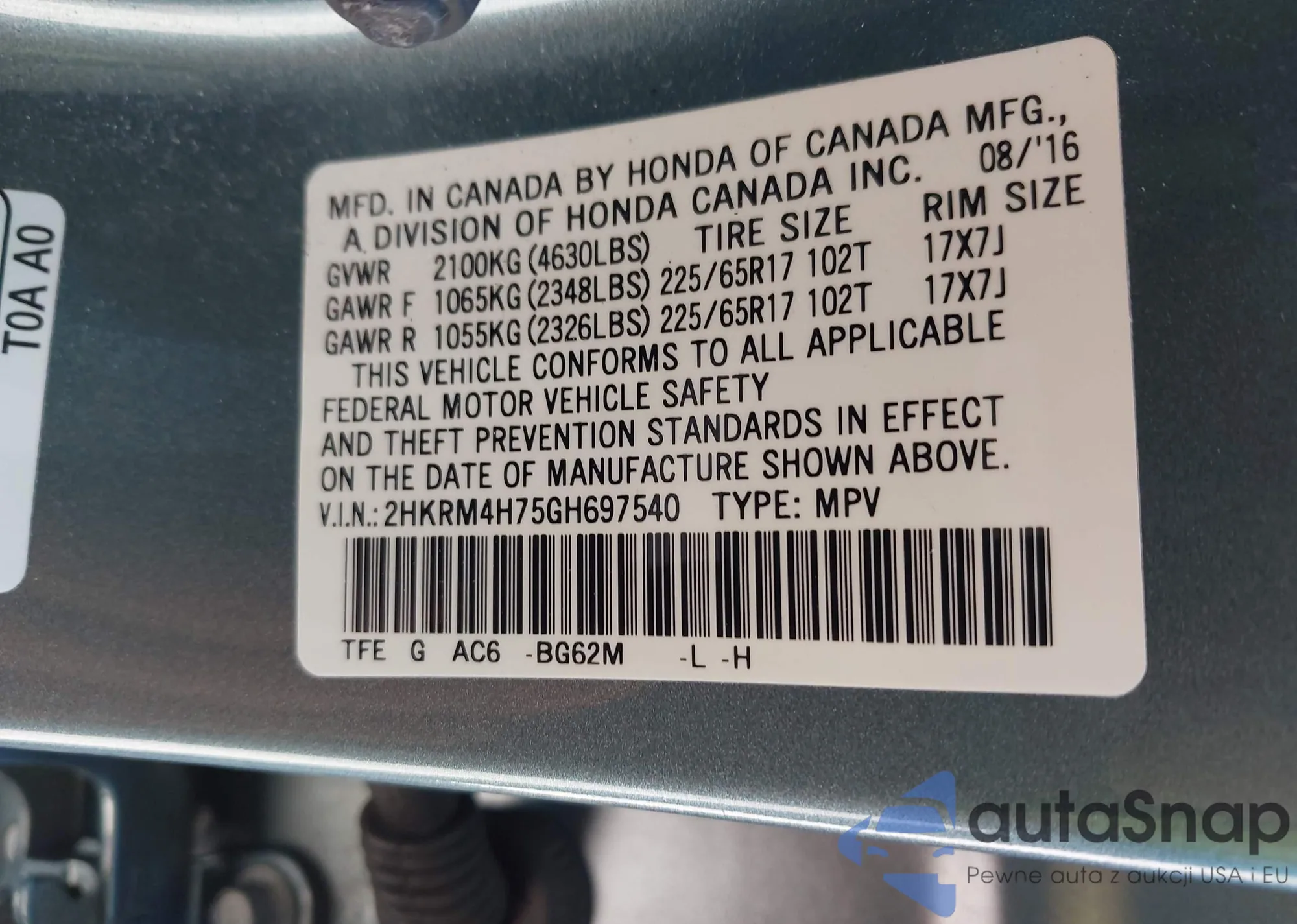 VIN: 2HKRM4H75GH697540