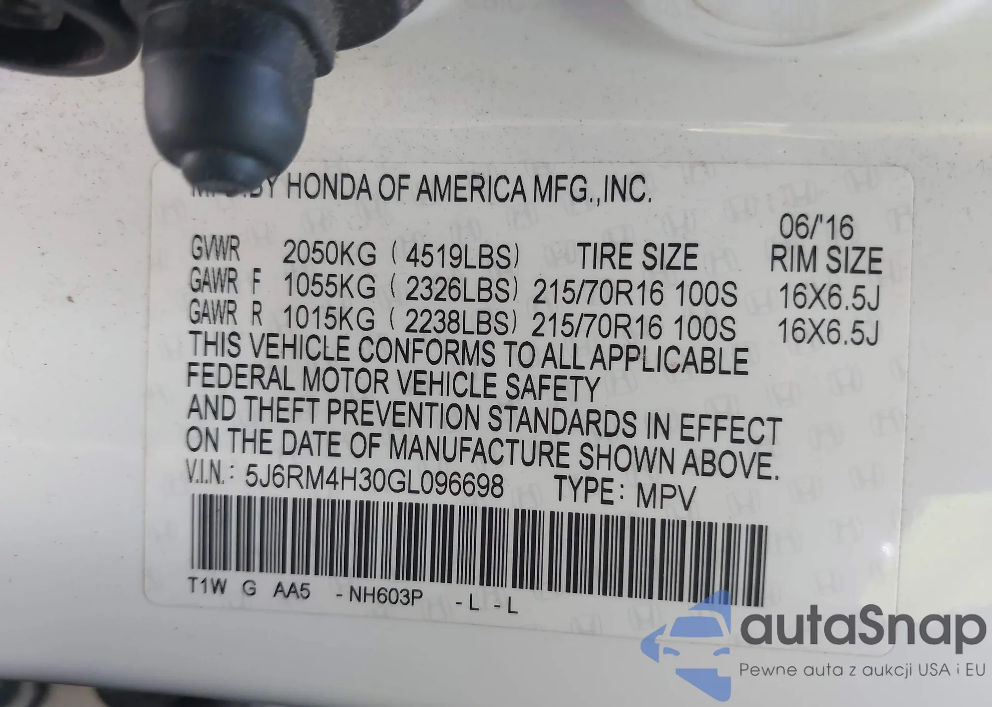 VIN: 5J6RM4H30GL096698