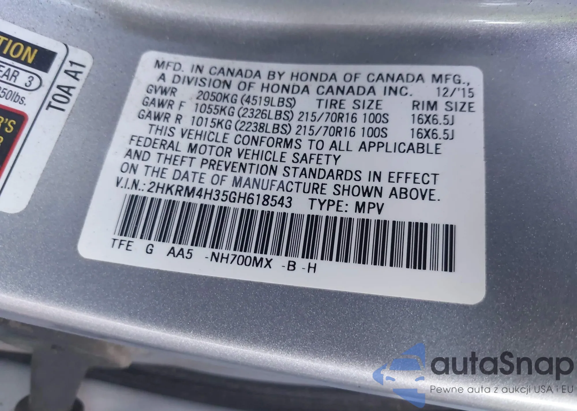 VIN: 2HKRM4H35GH618543