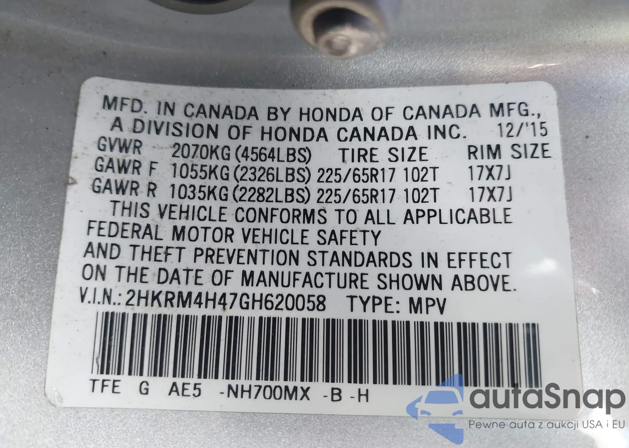 The car Honda CR-V 2016 (VIN 2HKRM4H47GH620058) has not been auctioned before. The documents are clean, and the mileage matches or is below the market average. Sold by an insurance company – we recommend purchase. Delivery to the port will take approx. 6–8 weeks.