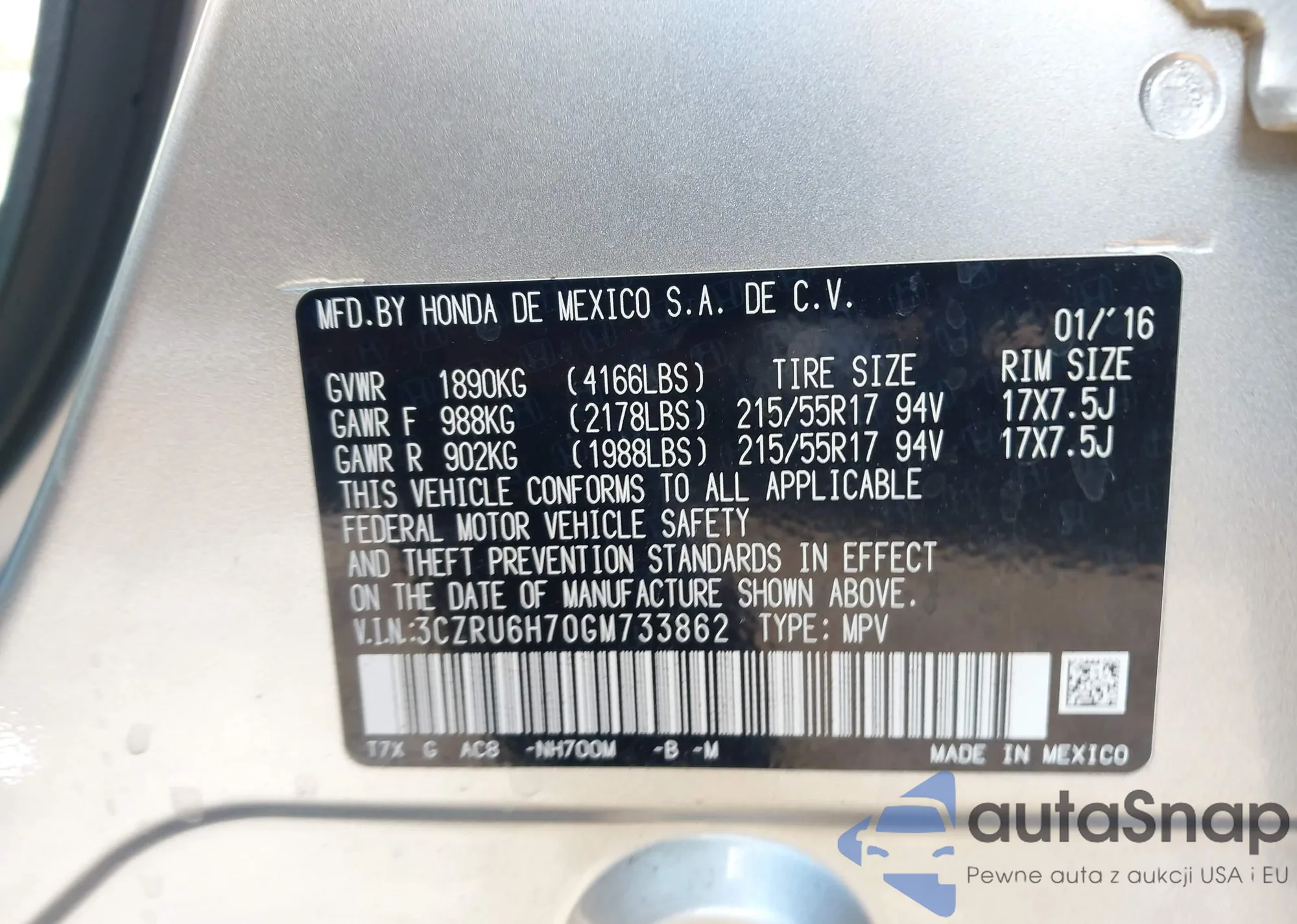 VIN: 3CZRU6H70GM733862