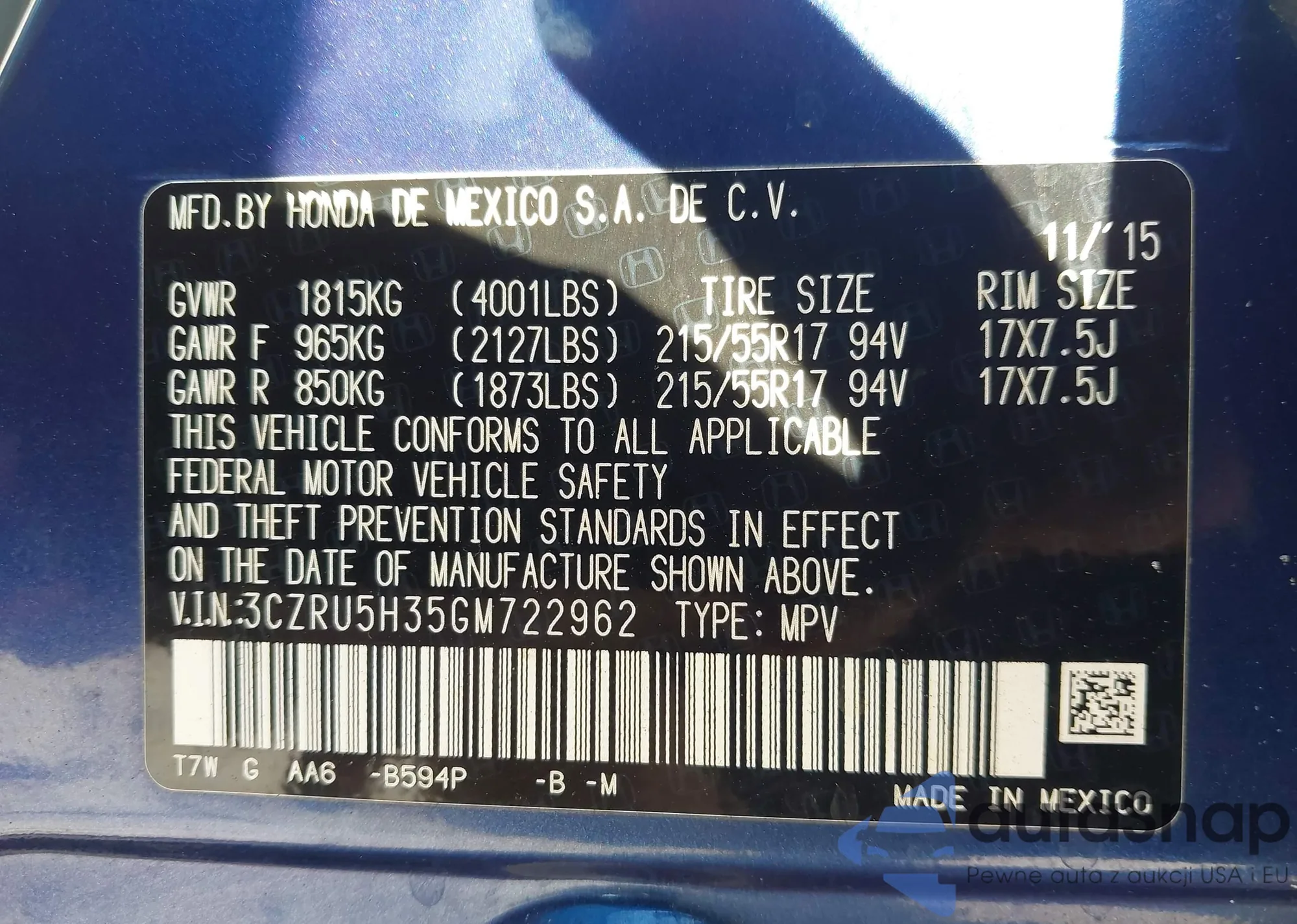 VIN: 3CZRU5H35GM722962