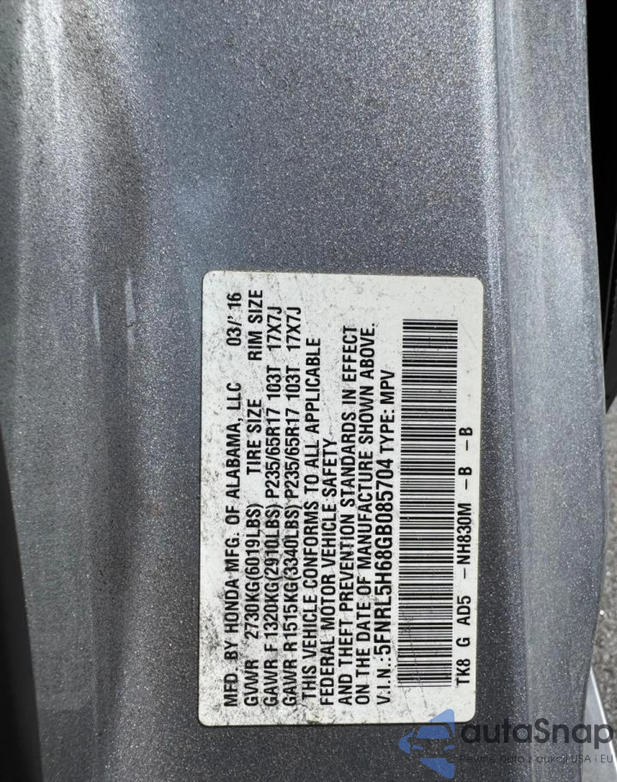 VIN: 5FNRL5H68GB085704