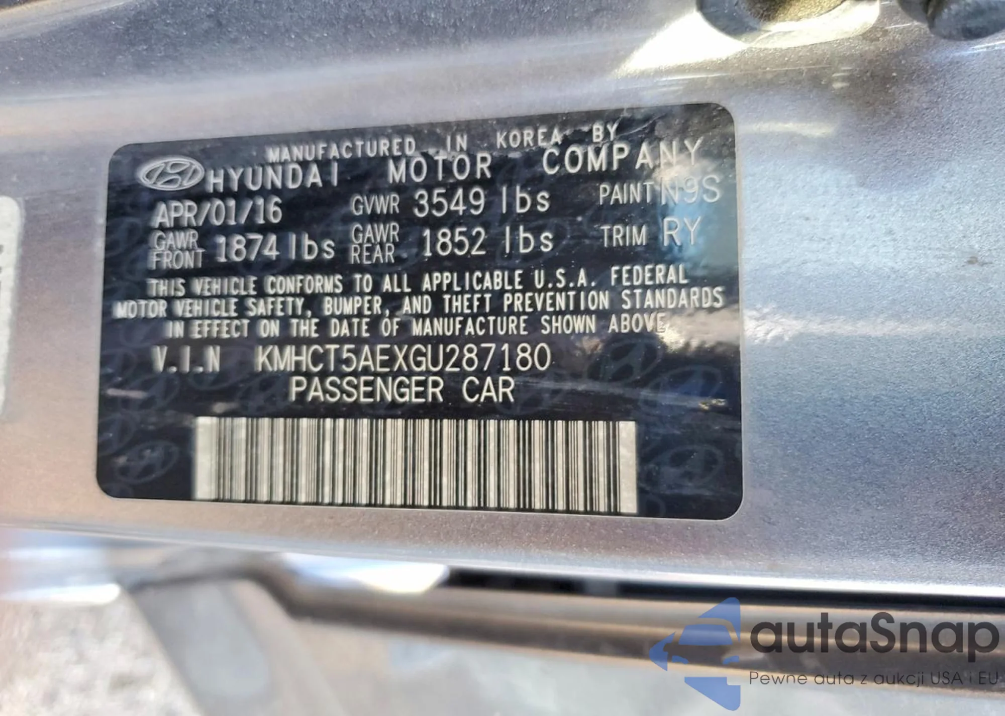 VIN: KMHCT5AEXGU287180