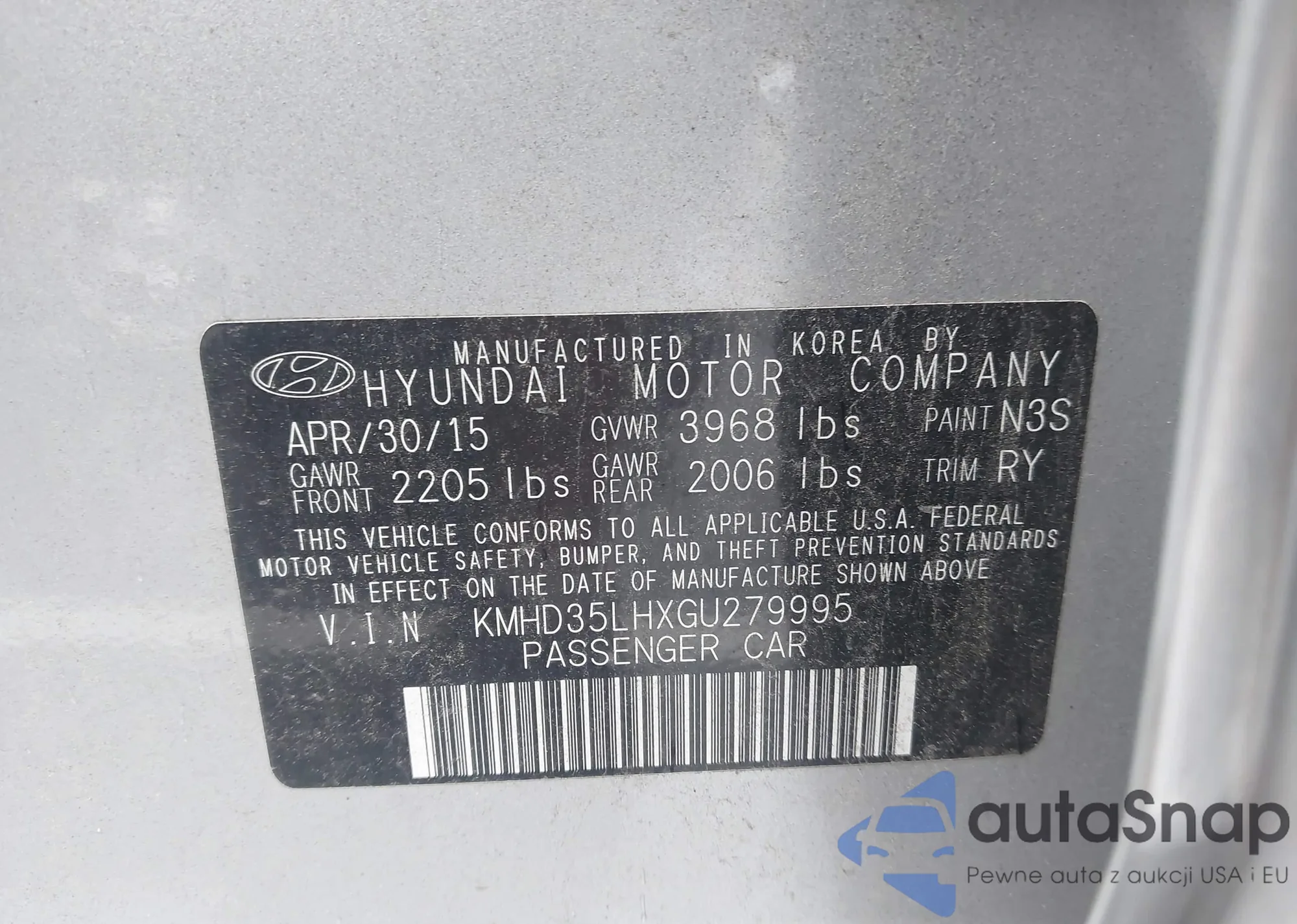 VIN: KMHD35LHXGU279995