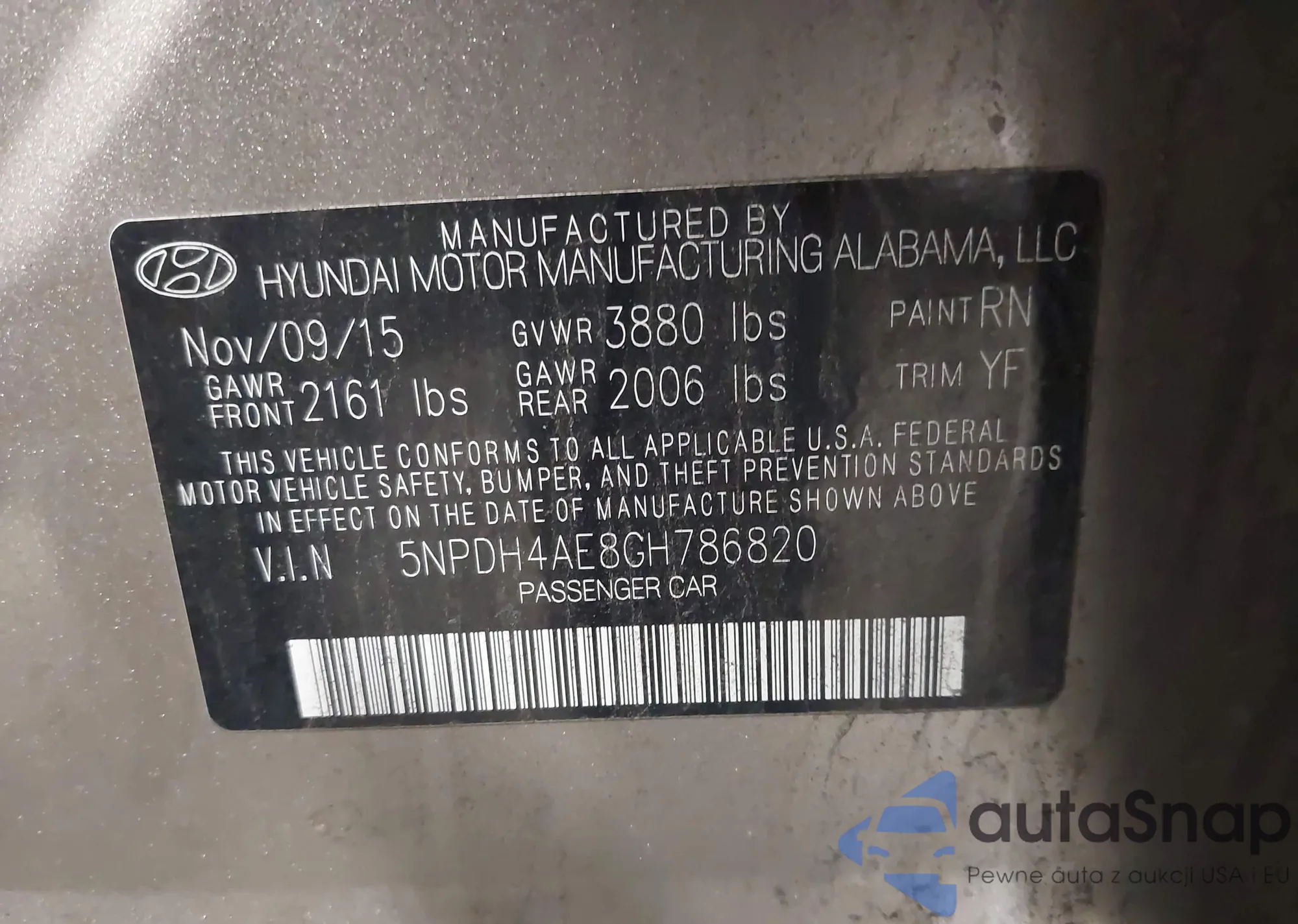 The car Hyundai Elantra 2016 (VIN 5NPDH4AE8GH786820) is sold by an unverified seller. We recommend checking the Carfax report and confirming registration possibilities before purchase.