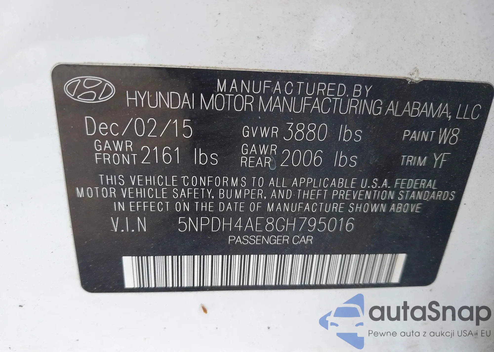 VIN: 5NPDH4AE8GH795016