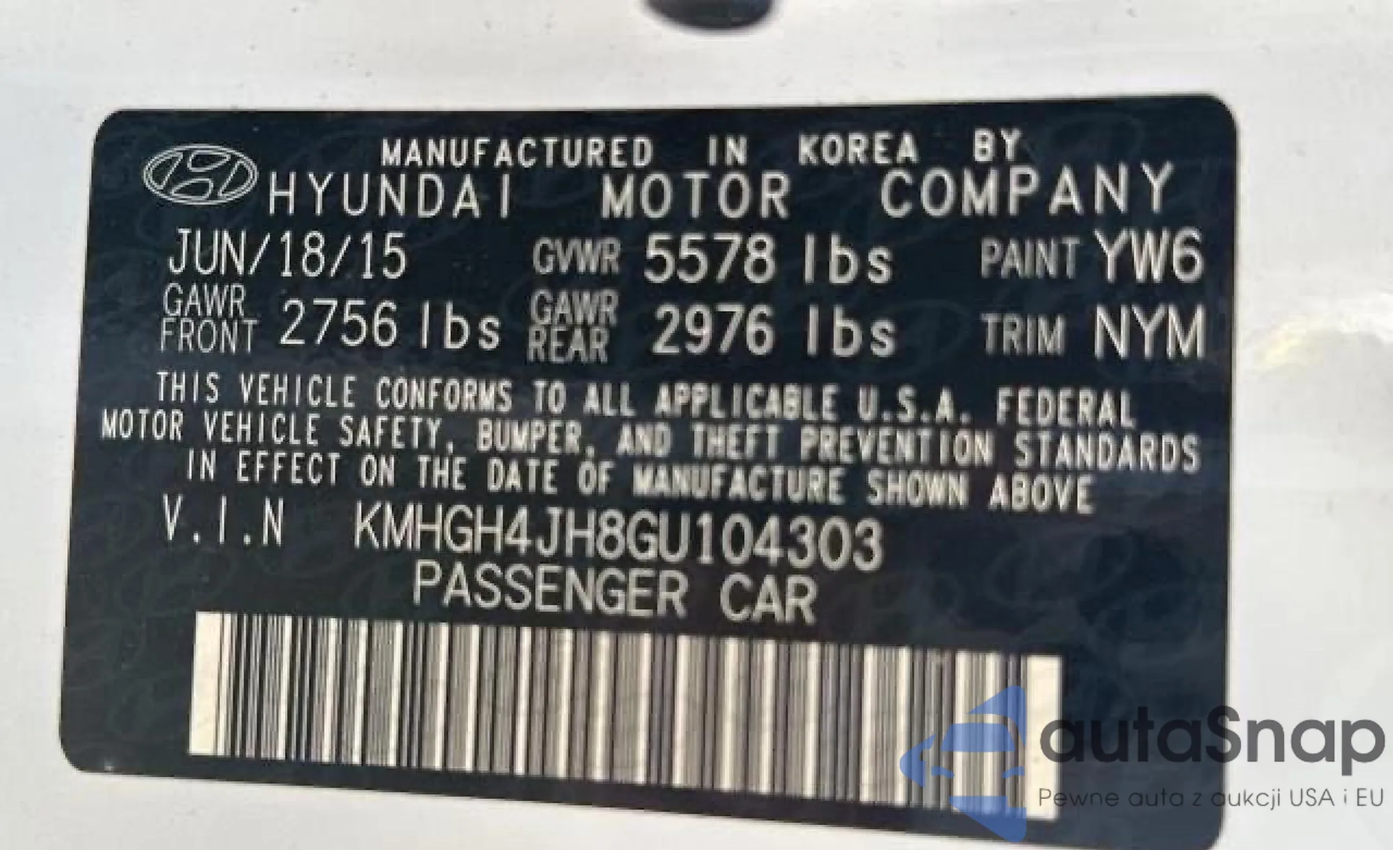 VIN: KMHGH4JH8GU104303