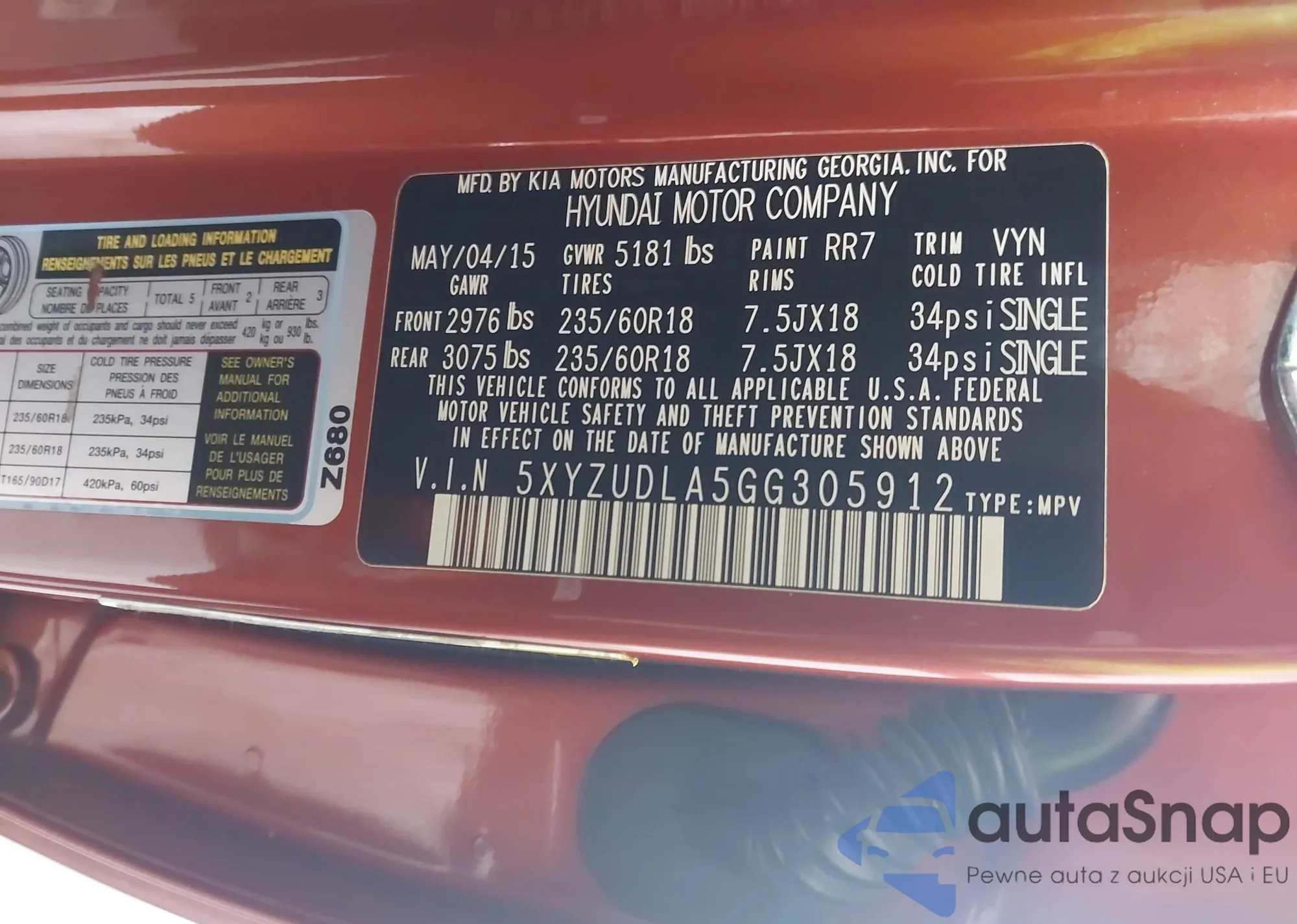 VIN: 5XYZUDLA5GG305912