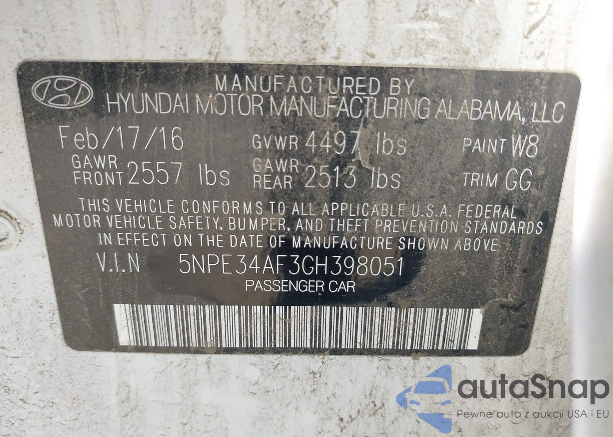 VIN: 5NPE34AF3GH398051