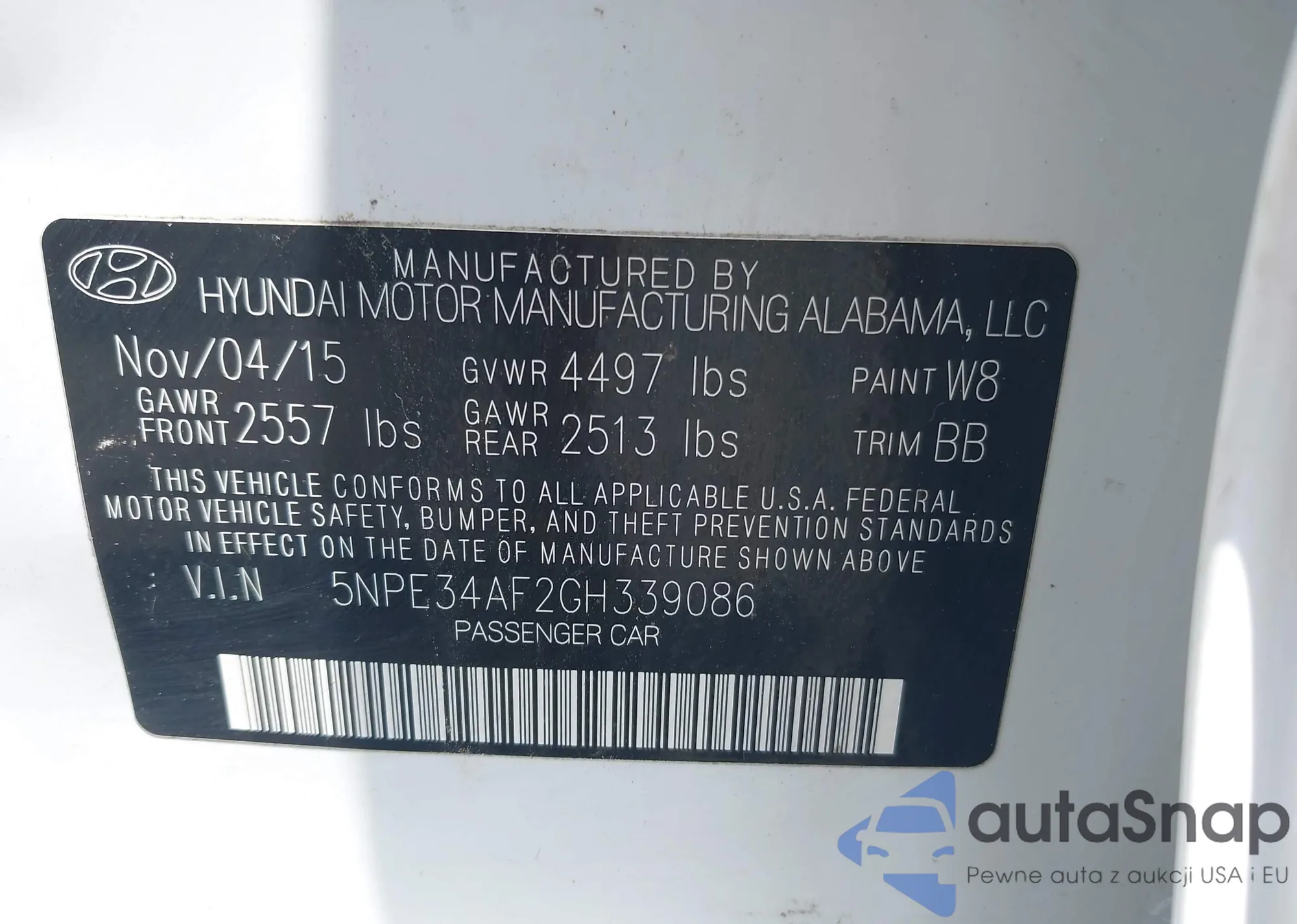 VIN: 5NPE34AF2GH339086