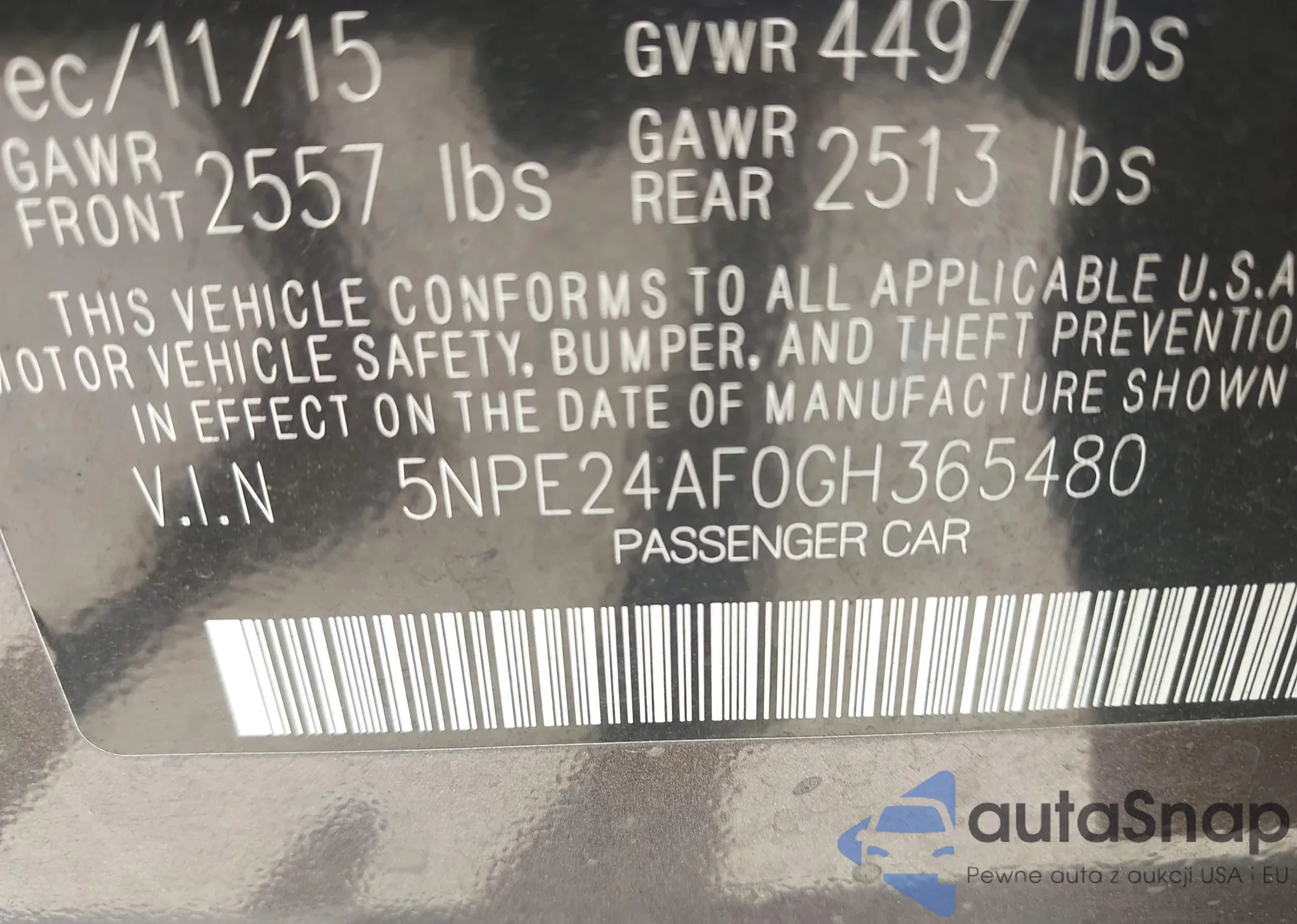 VIN: 5NPE24AF0GH365480