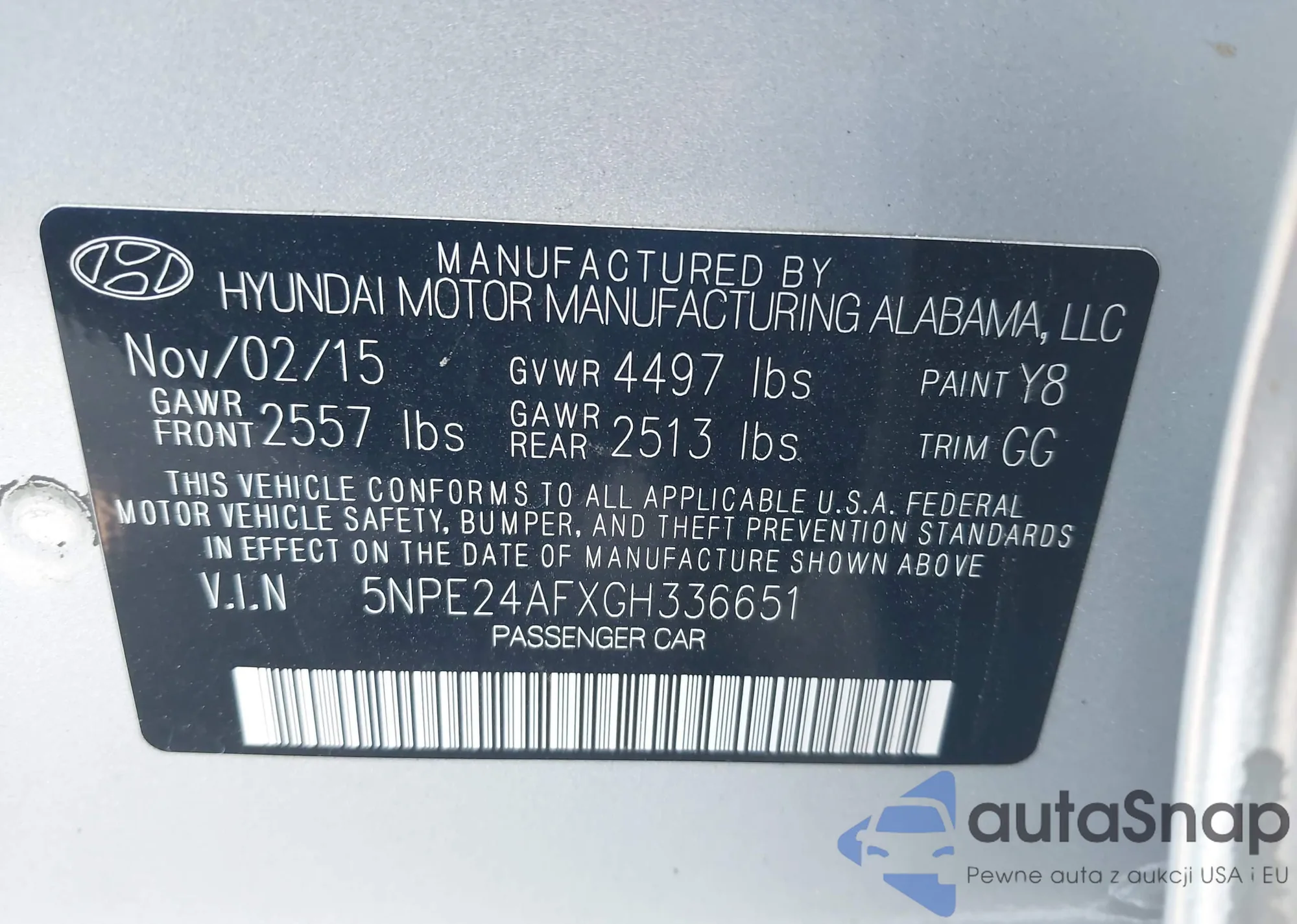 The car Hyundai Sonata 2016 (VIN 5NPE24AFXGH336651) has not been auctioned before. The documents are clean, and the mileage matches or is below the market average. Sold by an insurance company – we recommend purchase. Delivery to the port will take approx. 6–8 weeks.