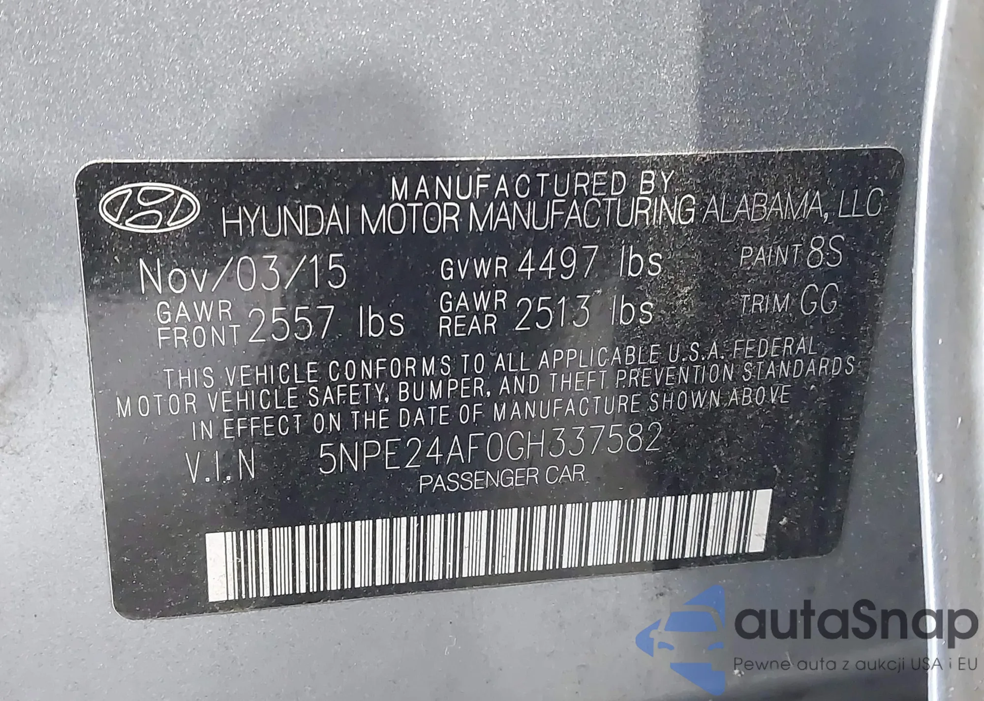 VIN: 5NPE24AF0GH337582