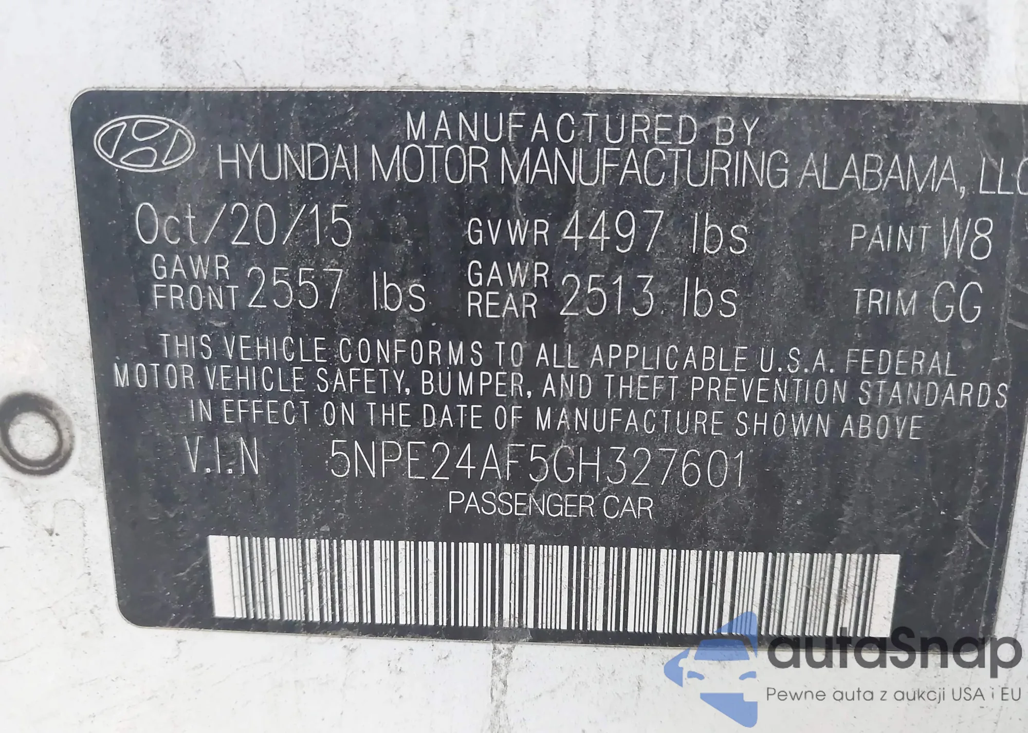VIN: 5NPE24AF5GH327601