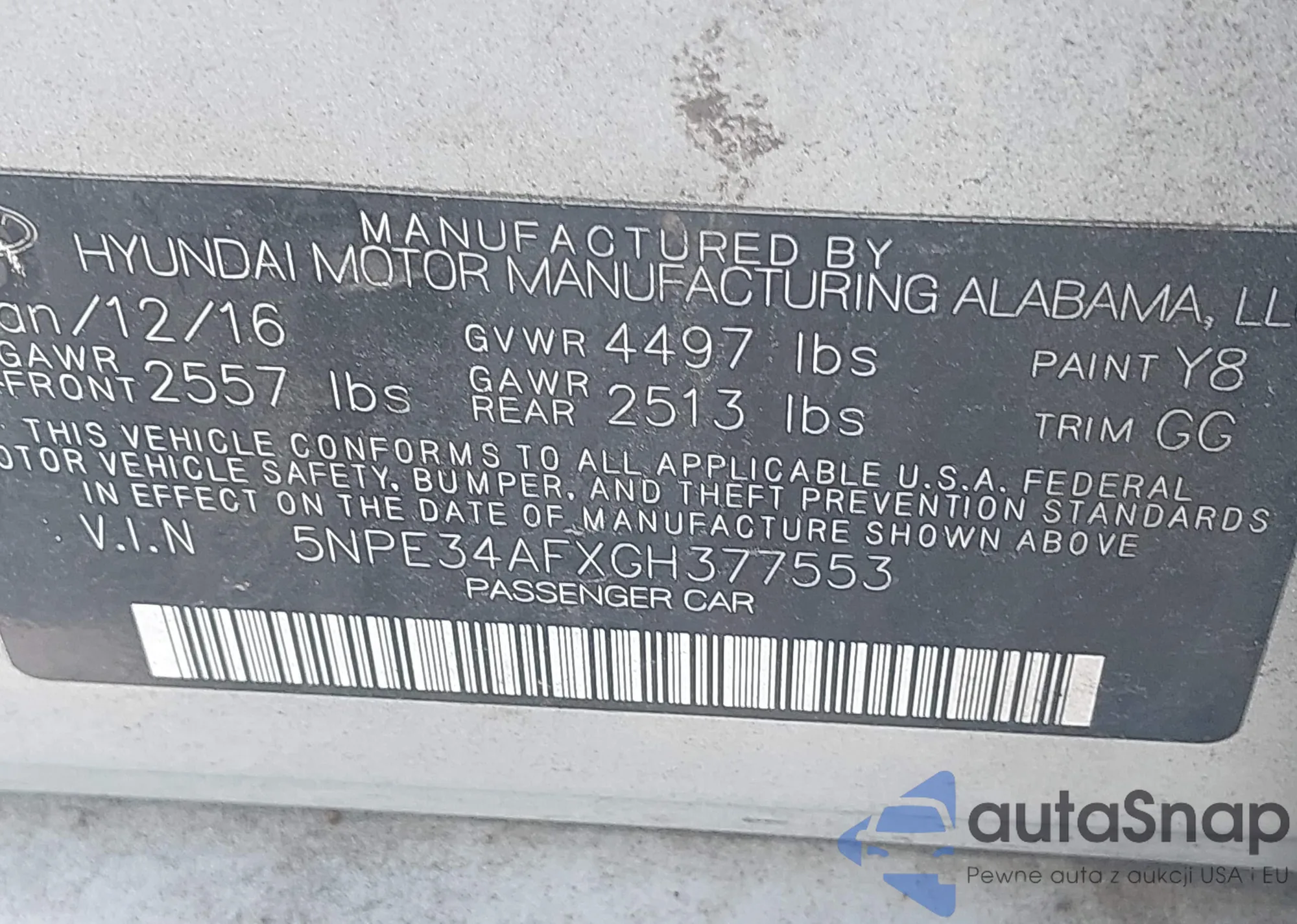 VIN: 5NPE34AFXGH377553