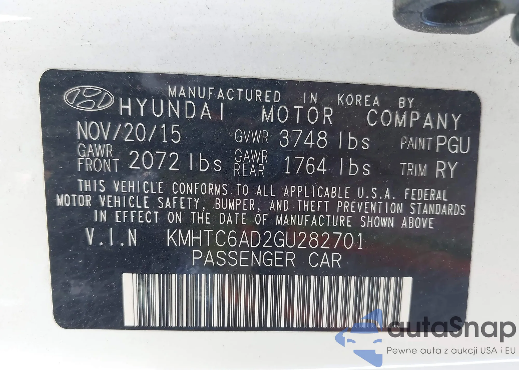 The car Hyundai Veloster 2016 (VIN KMHTC6AD2GU282701) is sold by an unverified seller. We recommend checking the Carfax report and confirming registration possibilities before purchase.