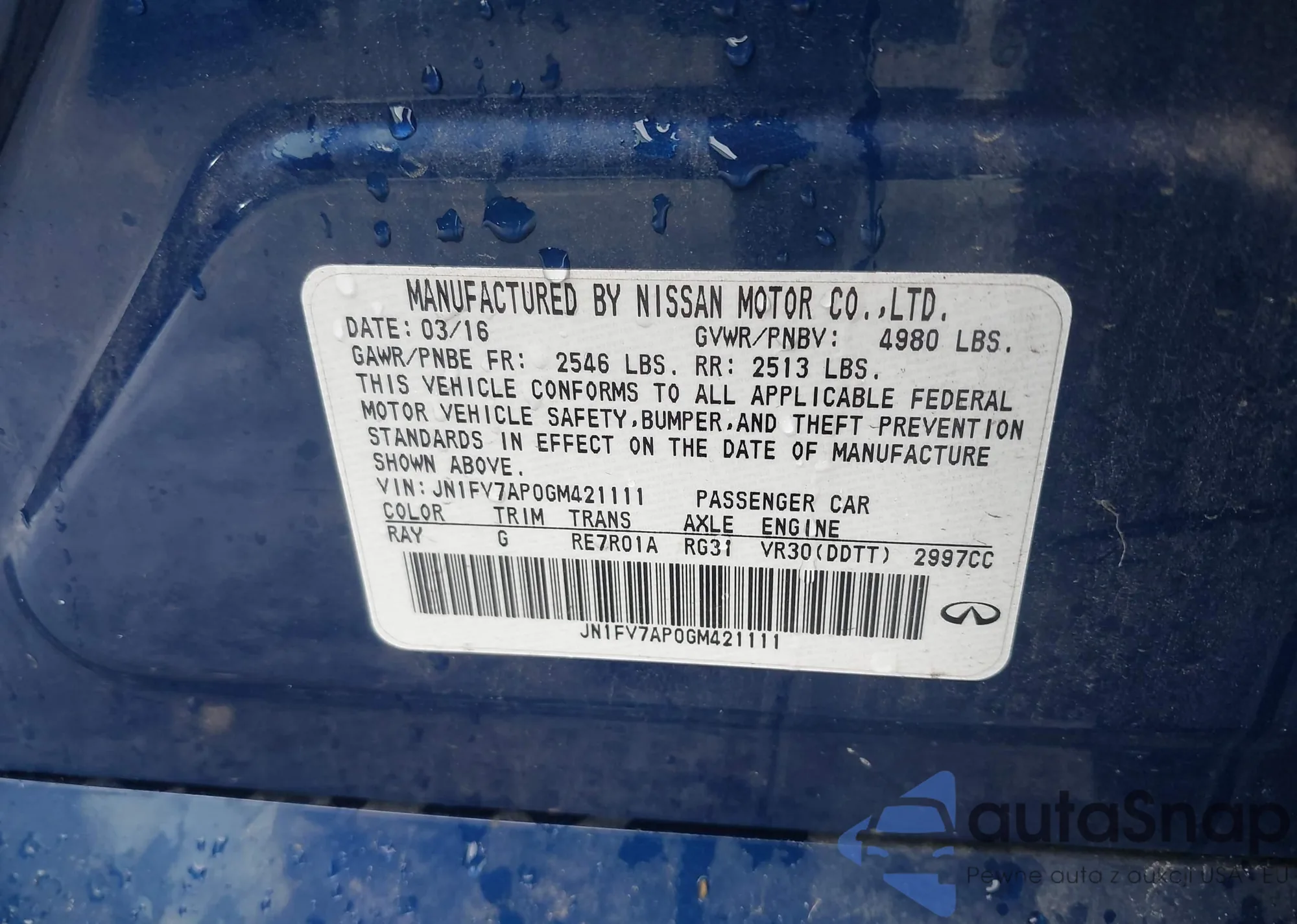 Make: 2016 Infiniti Q50 3.0...