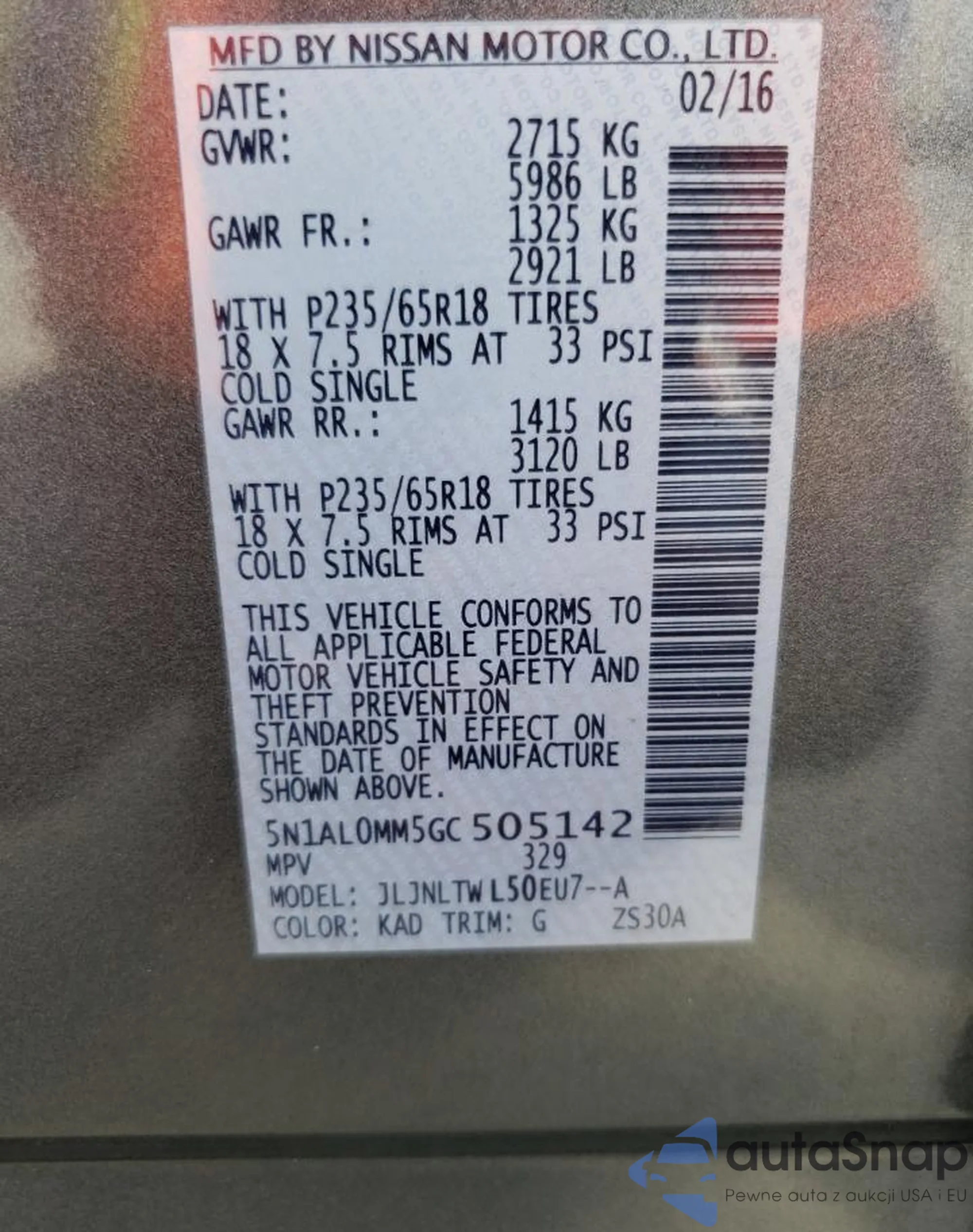 VIN: 5N1AL0MM5GC505142