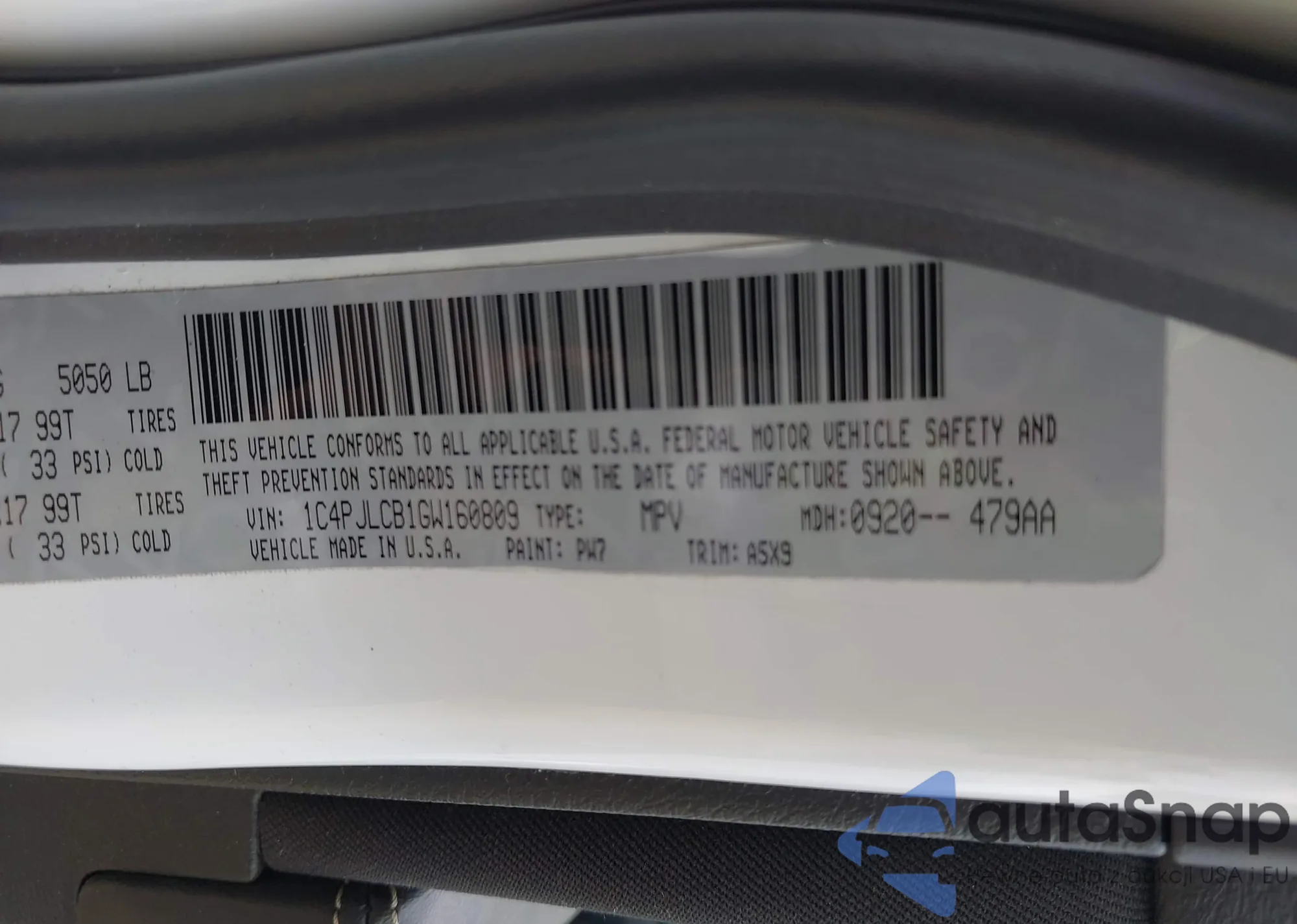 VIN: 1C4PJLCB1GW160809