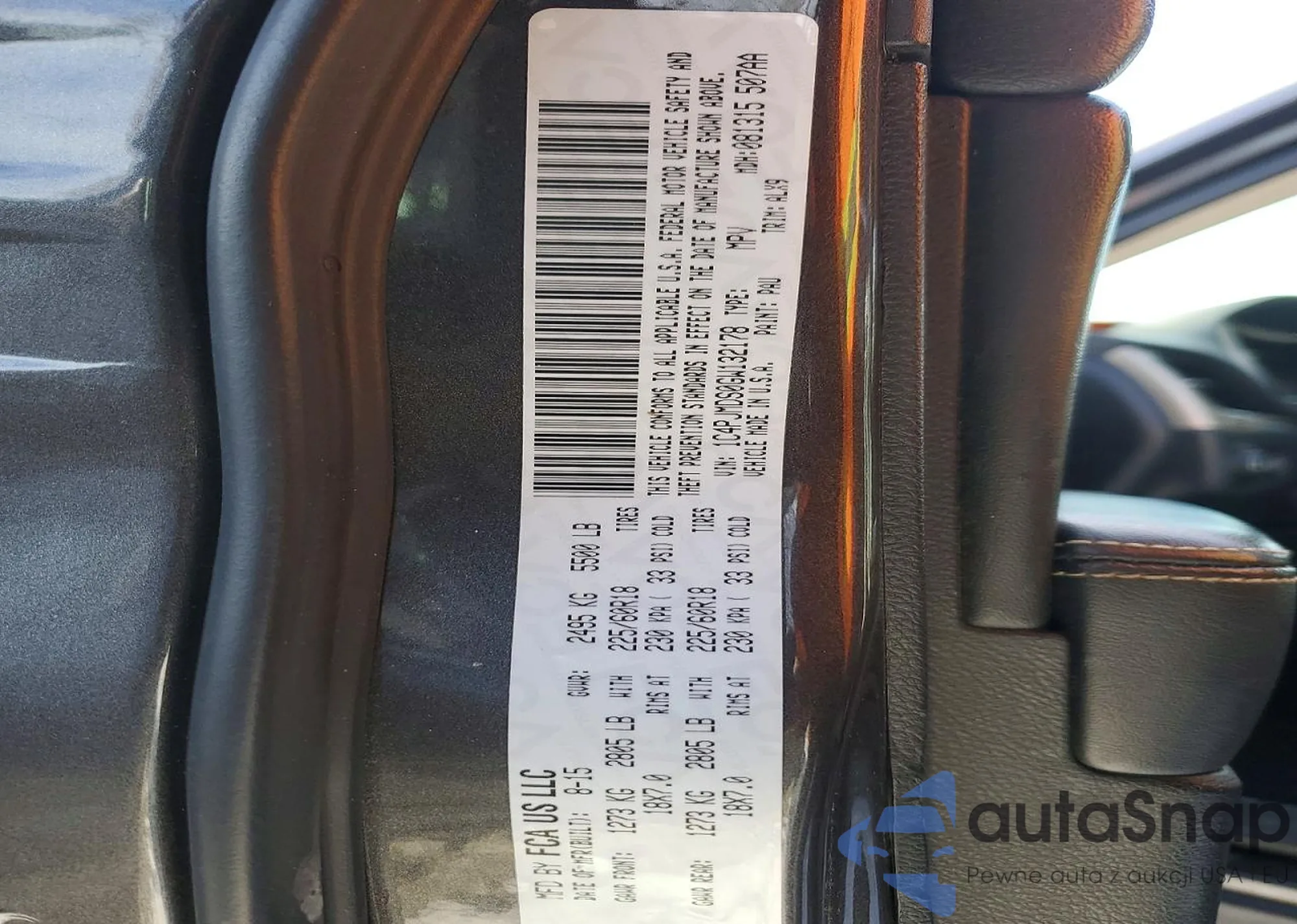 The car Jeep Cherokee 2016 (VIN 1C4PJMDS0GW132178) has documents that prevent registration. Export and registration may be difficult. Contact AutaSnap experts to find alternatives.