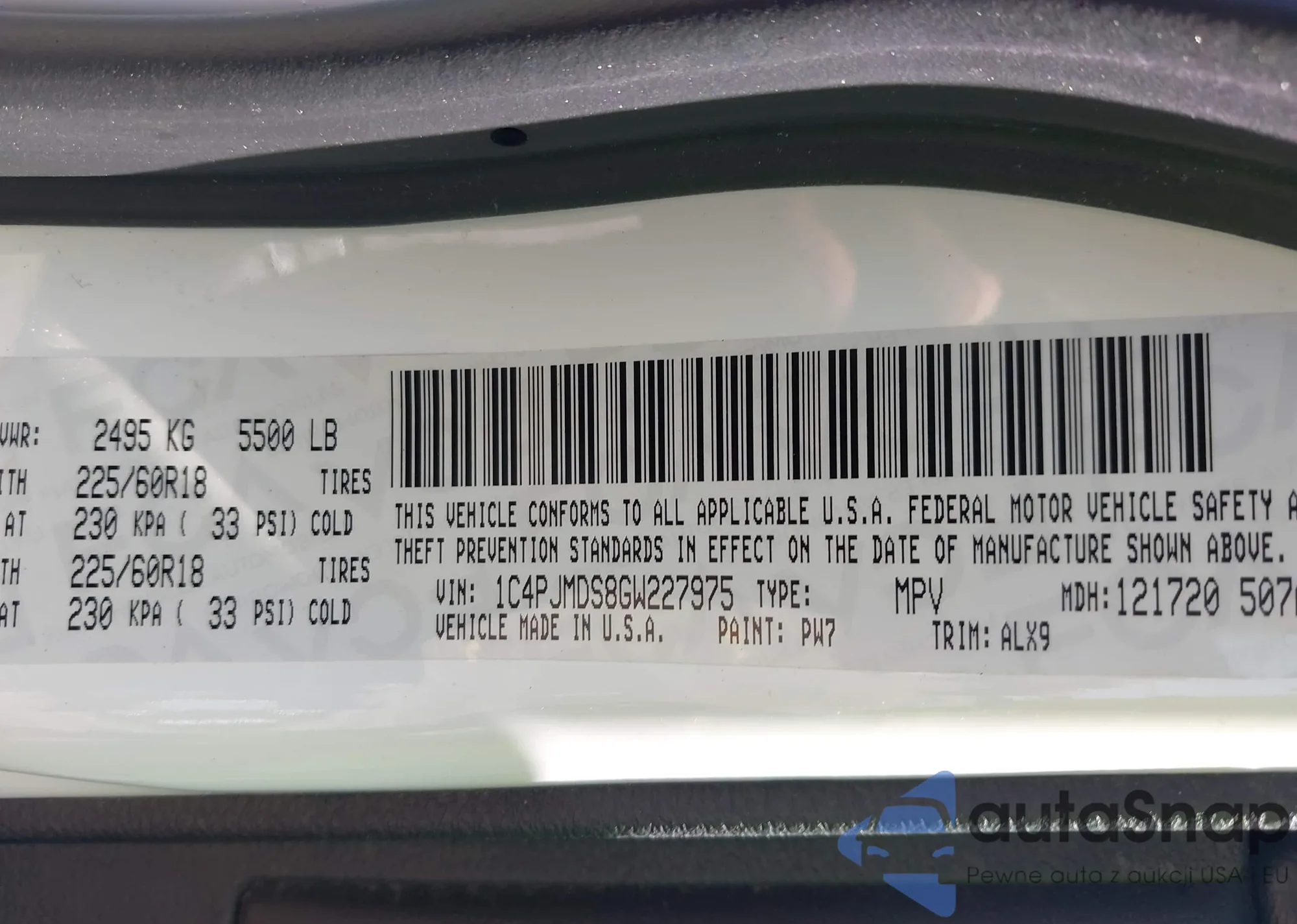 The car Jeep Cherokee 2016 (VIN 1C4PJMDS8GW227975) has not been auctioned before. The documents are clean, and the mileage matches or is below the market average. Sold by an insurance company – we recommend purchase. Delivery to the port will take approx. 6–8 weeks.