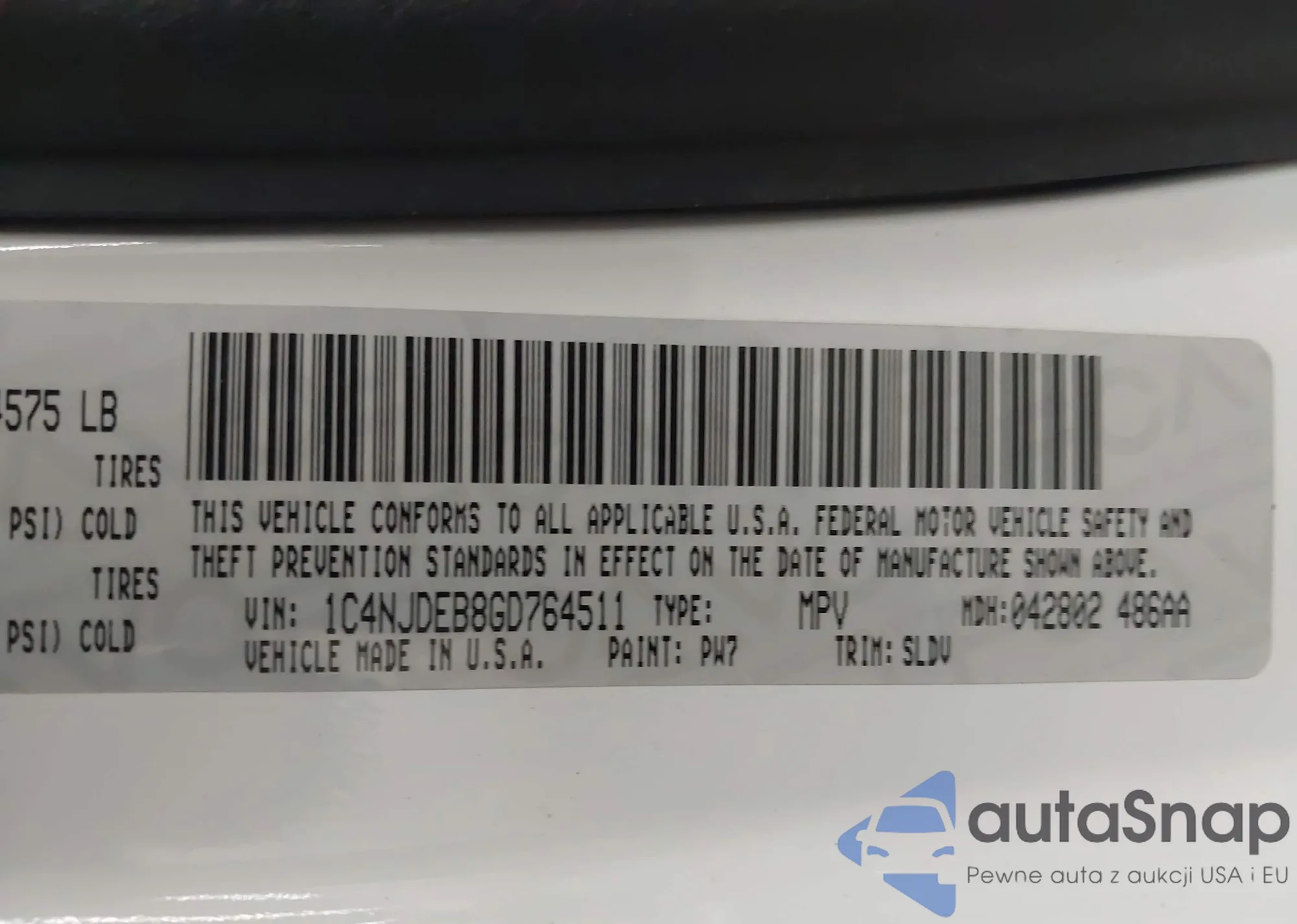 • VIN: 1C4NJDEB8GD764511