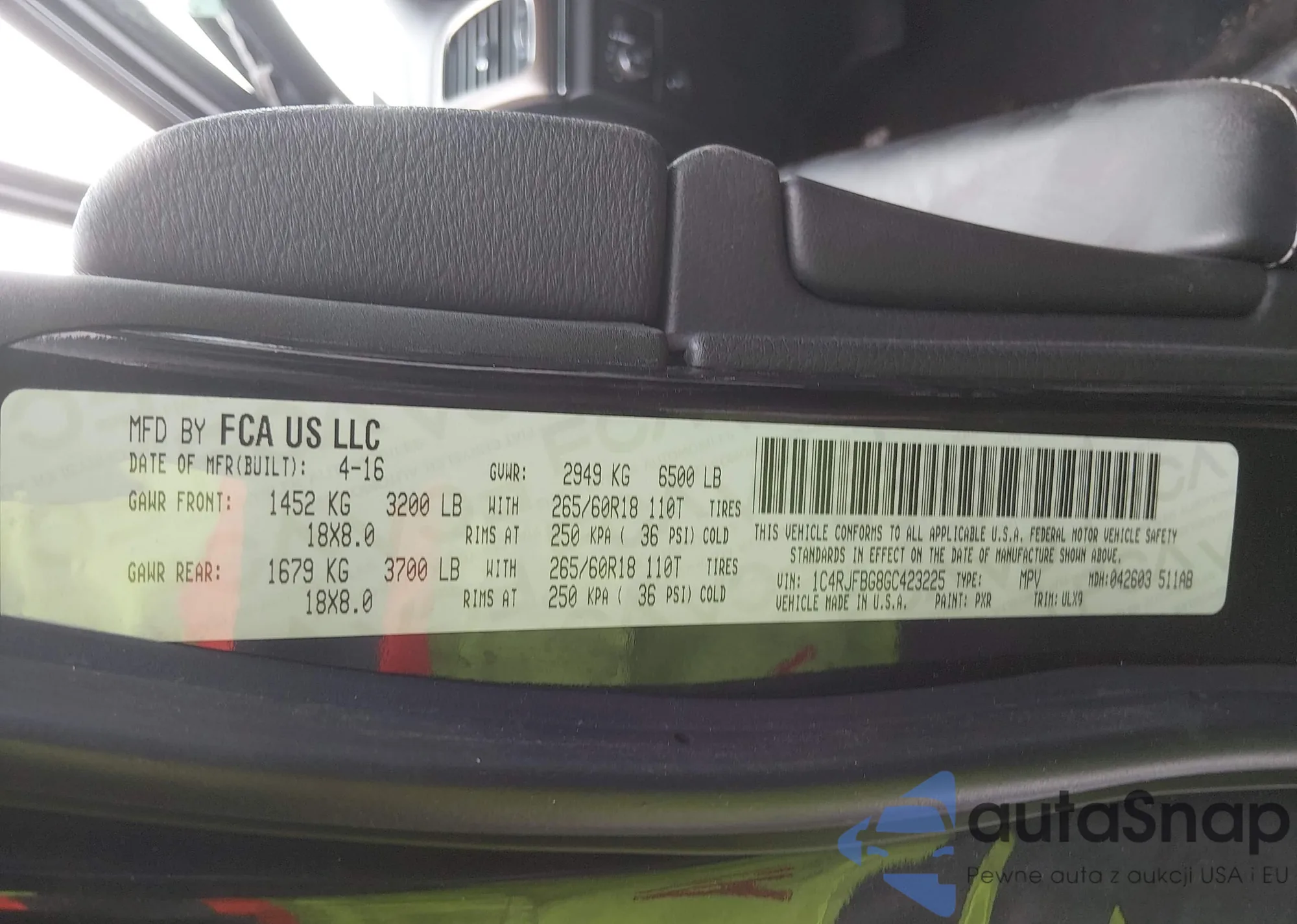 The car Jeep Grand Cherokee 2016 (VIN 1C4RJFBG8GC423225) has not been auctioned before. The documents are clean, and the mileage matches or is below the market average. Sold by an insurance company – we recommend purchase. Delivery to the port will take approx. 6–8 weeks.