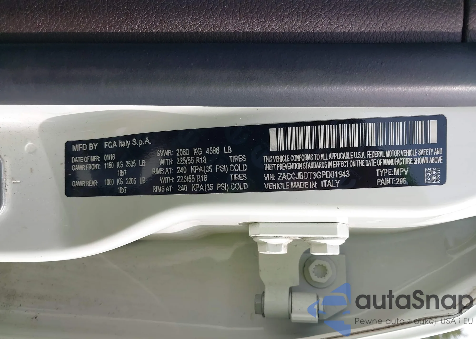 VIN: ZACCJBDT3GPD01943
