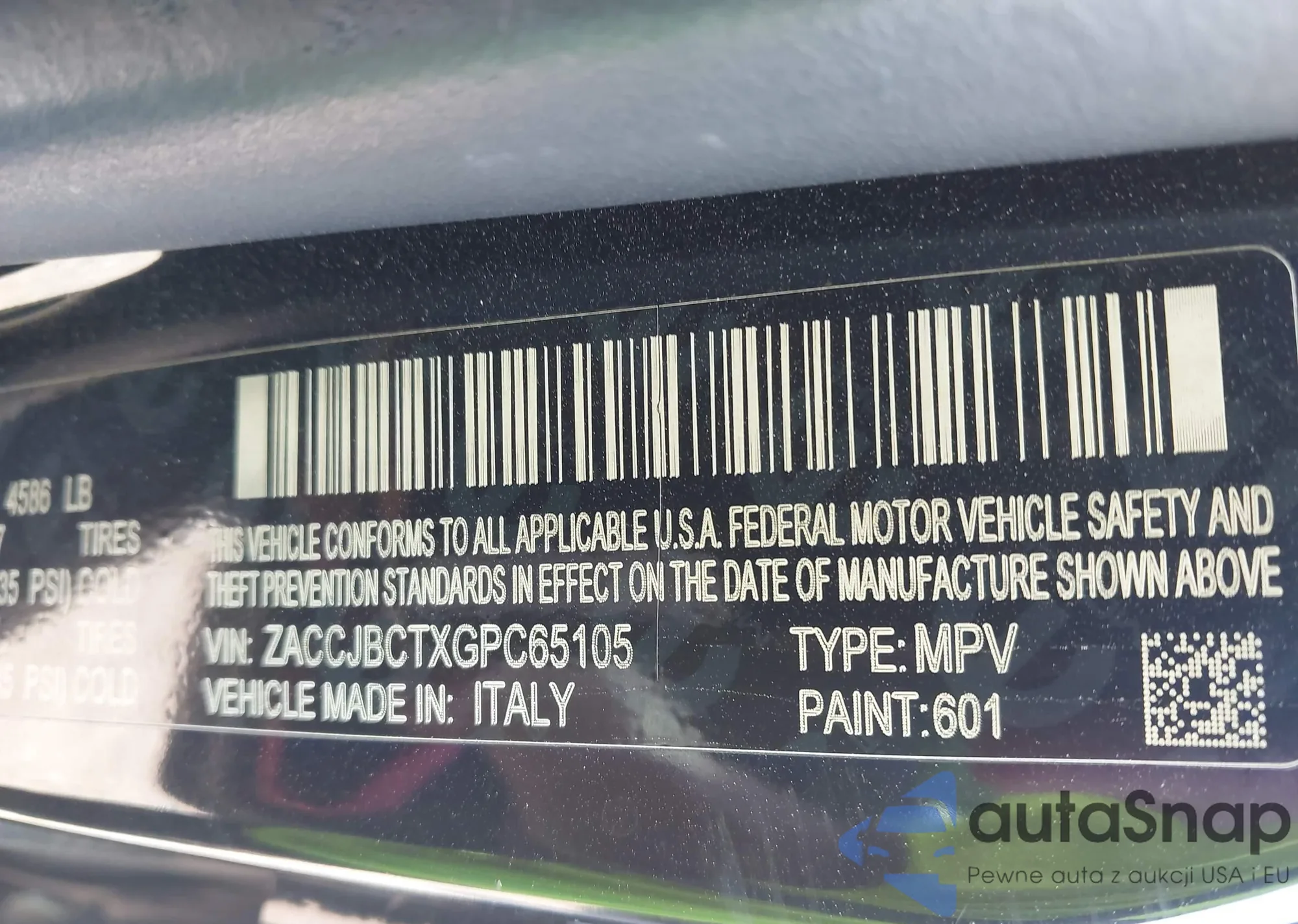 • VIN: ZACCJBCTXGPC65105