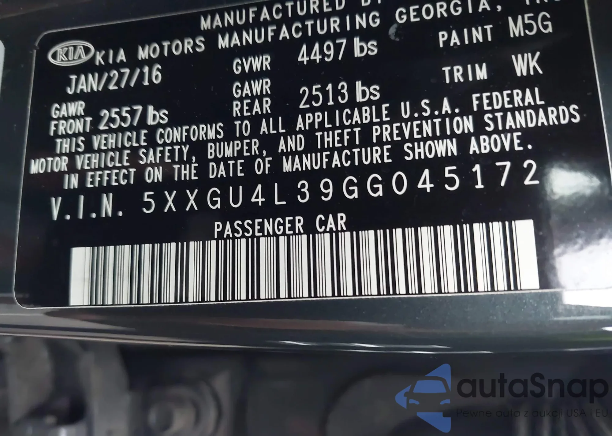VIN: 5XXGU4L39GG045172