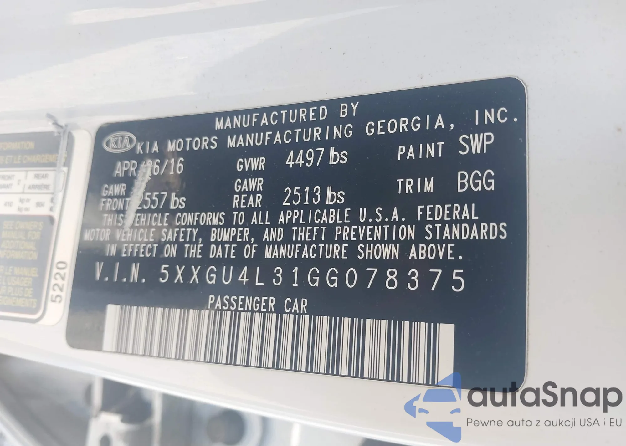 VIN: 5XXGU4L31GG078375