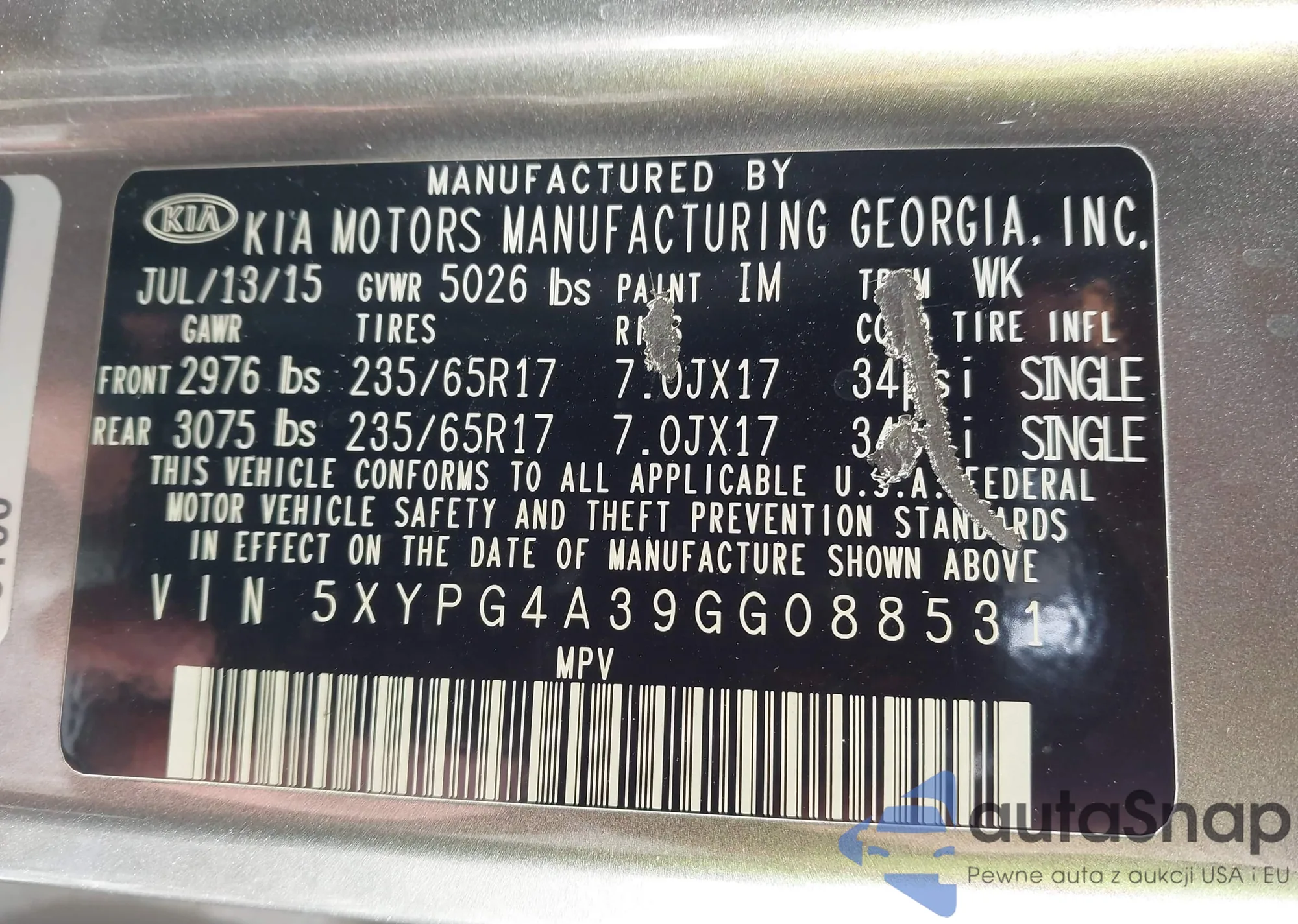 The car Kia Sorento 2016 (VIN 5XYPG4A39GG088531) has not been auctioned before. The documents are clean, and the mileage matches or is below the market average. Sold by an insurance company – we recommend purchase. Delivery to the port will take approx. 6–8 weeks.