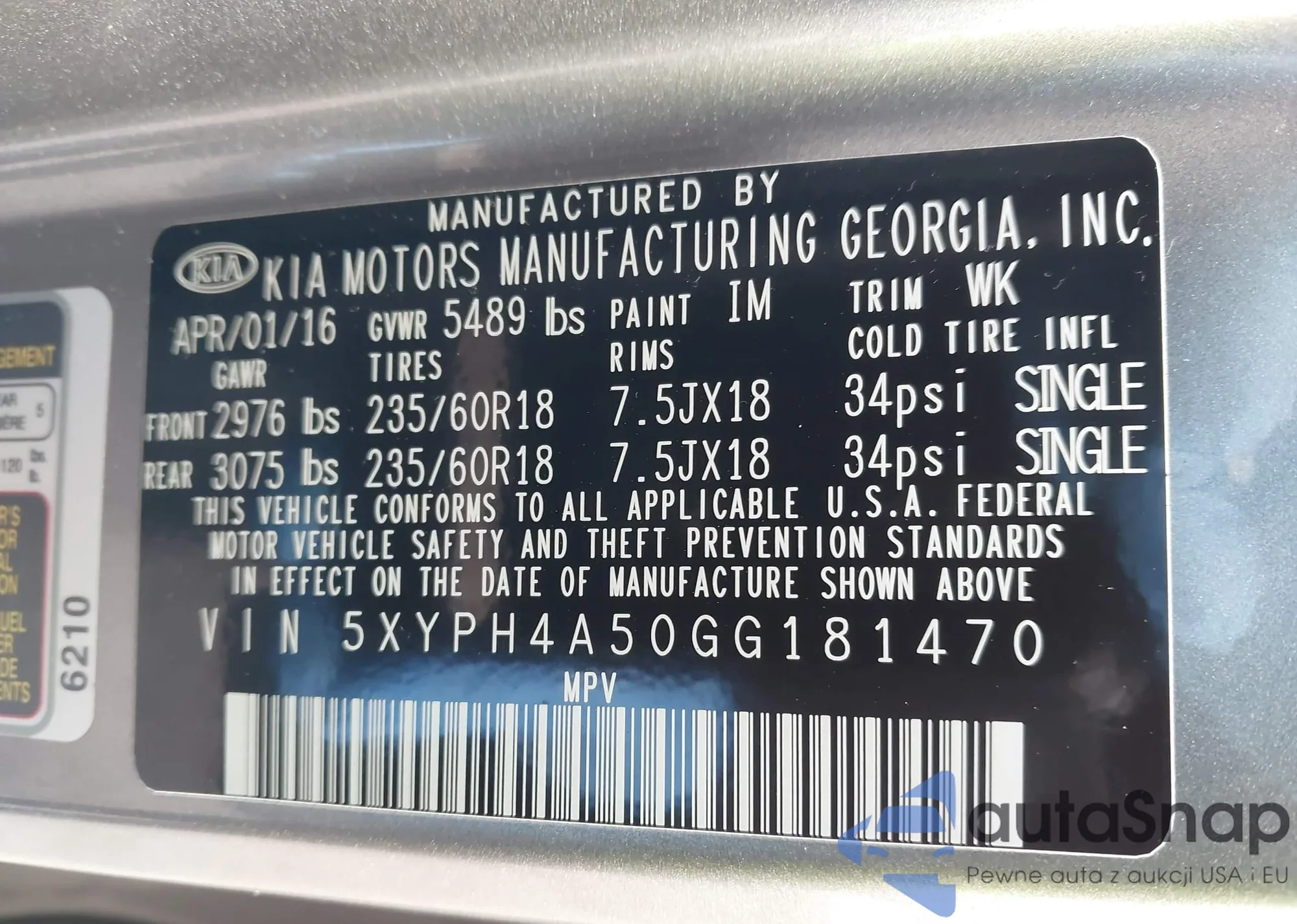 • VIN: 5XYPH4A50GG181470